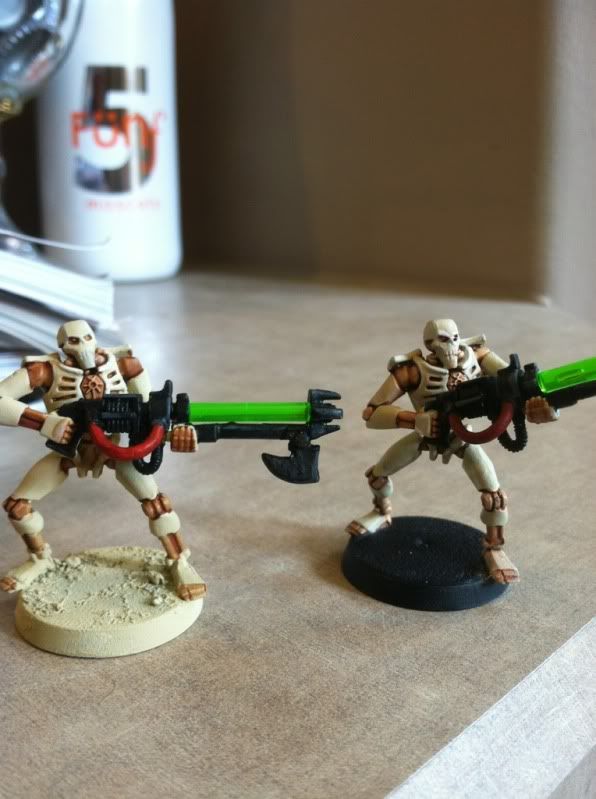 Okay so I have 40 models that need to be painted. I need you guys to tell me if you see a difference in these two units? Please note that I rushed through these and that I need these to be table top ready not WD worthy lol. So main point is can you notice a difference? Oh yeah, tubes will be changed. This was for picture purposes. I plan on doing blue or purple. Leaning to blue