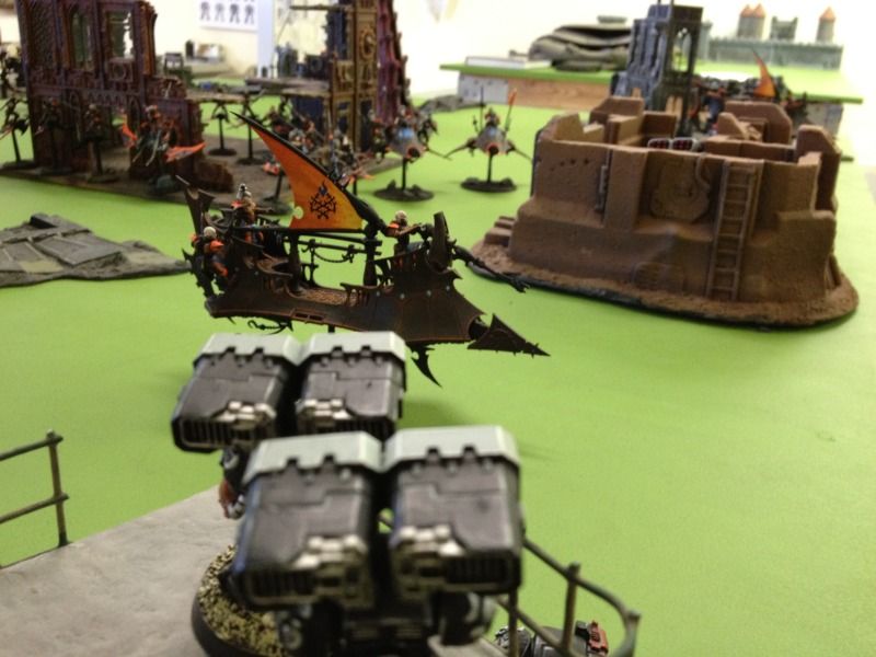 My speeders on the right flank take 3 lances from the ravager and one from the warrior’s raider downing one and shaking the other.