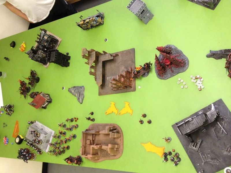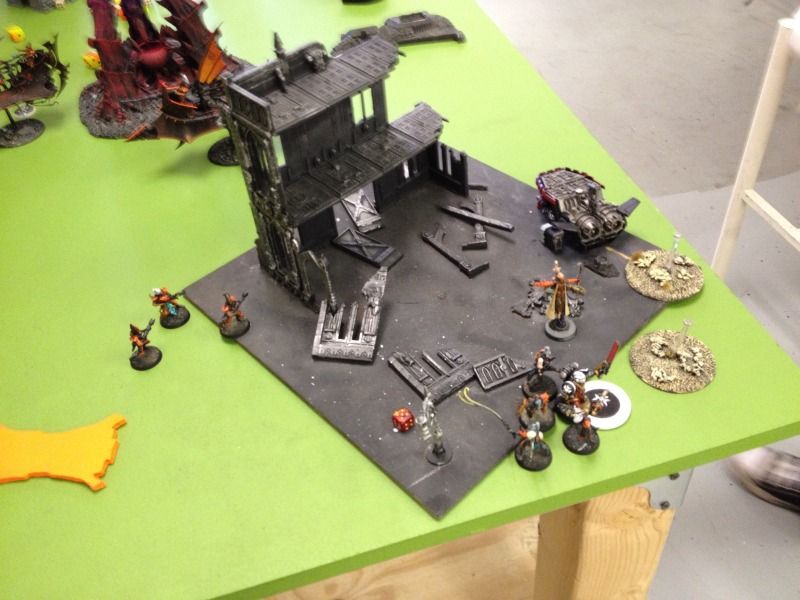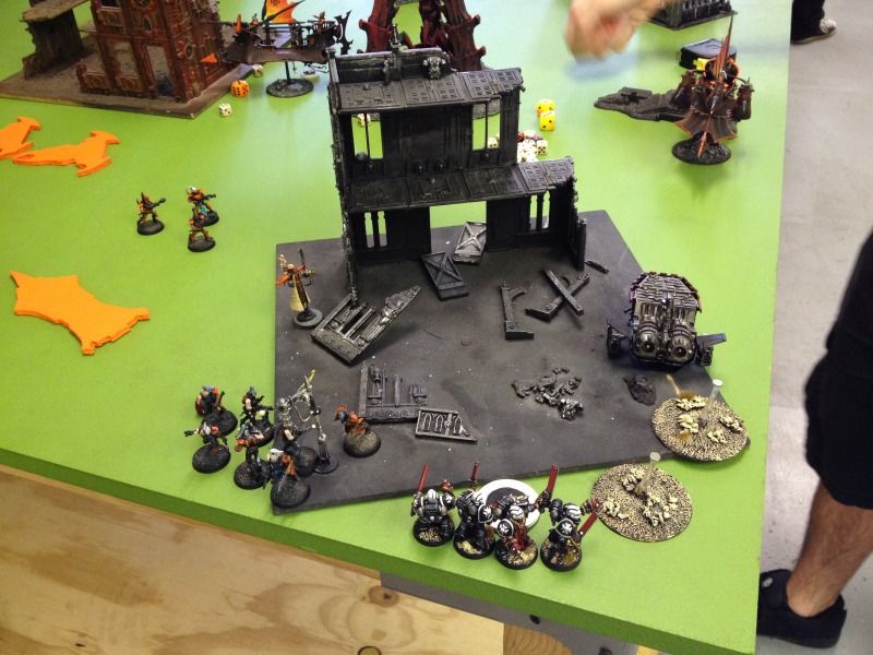 Brian has two seize ground objectives, one with the hellions and the other with the warriors on the other side of the center ruin.