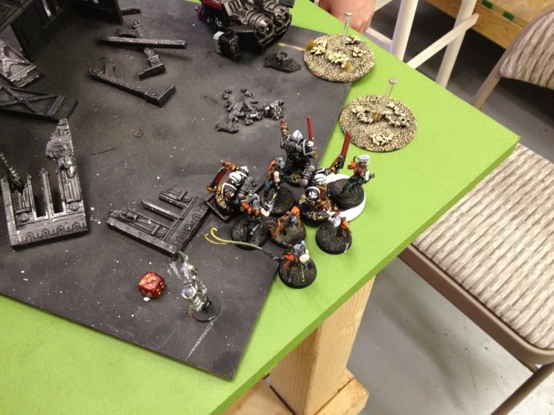 The hellions made a good fleet roll and charge into the marine squad; again they pass all dangerous terrain tests. Since the hellion were so strung out only a handful make combat.