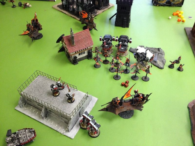 The two remaining ravagers advance on either flank to get clear shots on the last of my speeders.