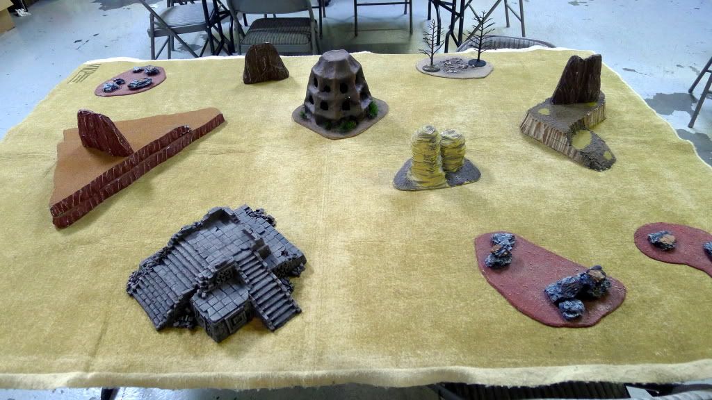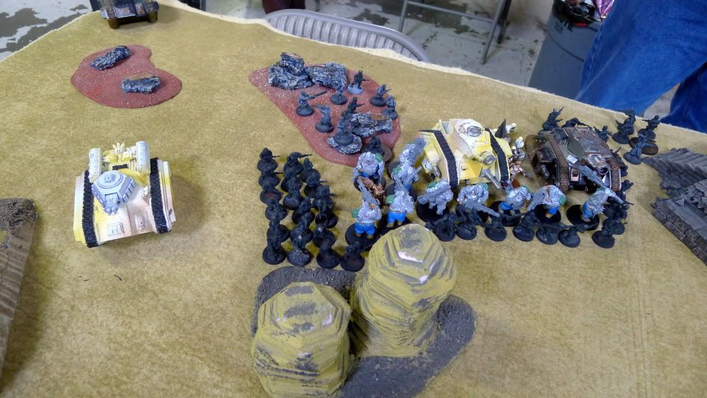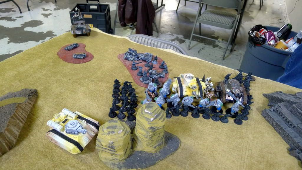 This is a practice tournament game. No, I'm not going to a tournament. It is actually my opponent, Kevin (aka Janthkin), who will be going to a tournament (Slaughter in Space) and I will be his "sparring" partner. Kevin is experimenting with an unorthodox IG list. It is essentially an anti-meta IG list, much like what Reece brought one time to a tournament. Bascially, it emphasizes resilient infantry units backed by essentially AV14 tanks. What anchors his list? A deathstar unit of Ogryns buffed up by a Lord Commissar and Straken. Will it work? I guess if he can finish painting it in time, we will see at Slaughter.