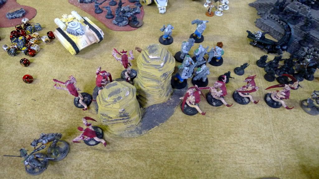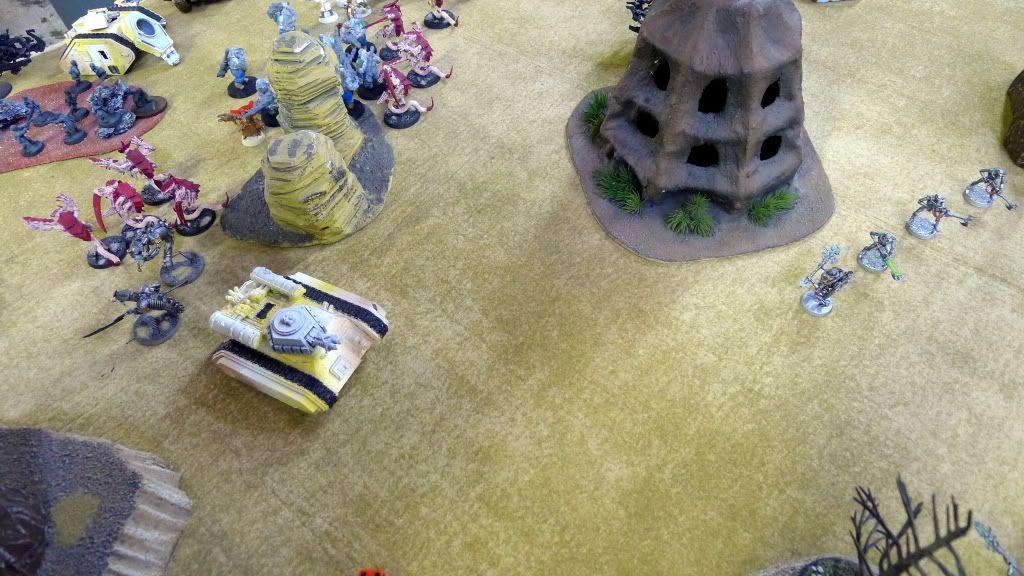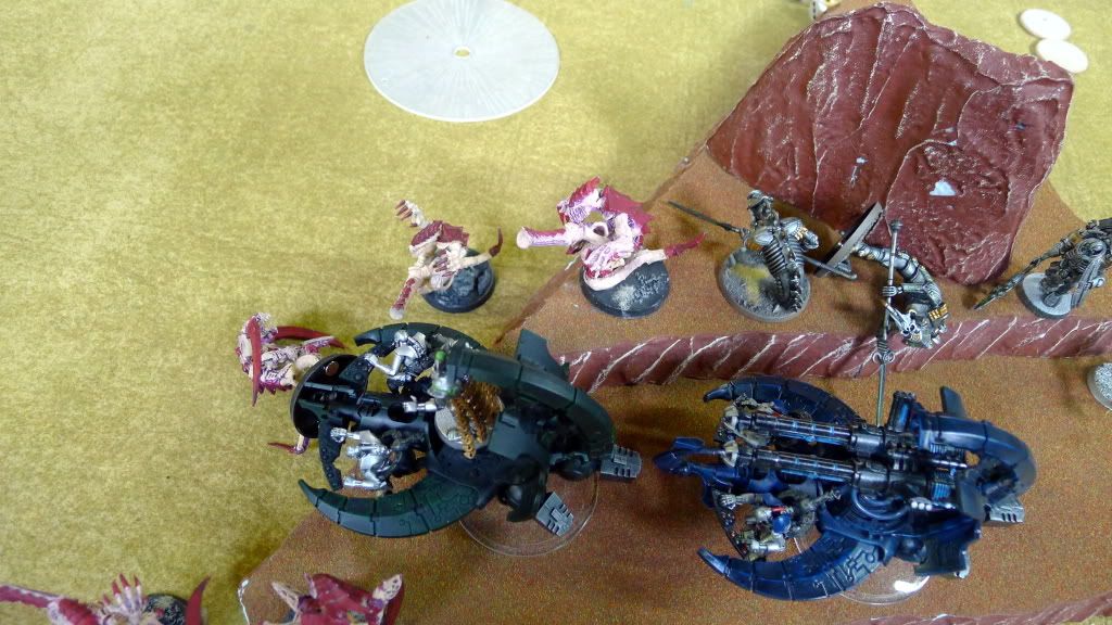 Right wraiths (now a 3-man unit) barely make it into assault with his PCS (platoon command squad).