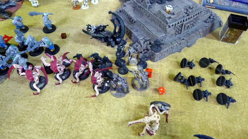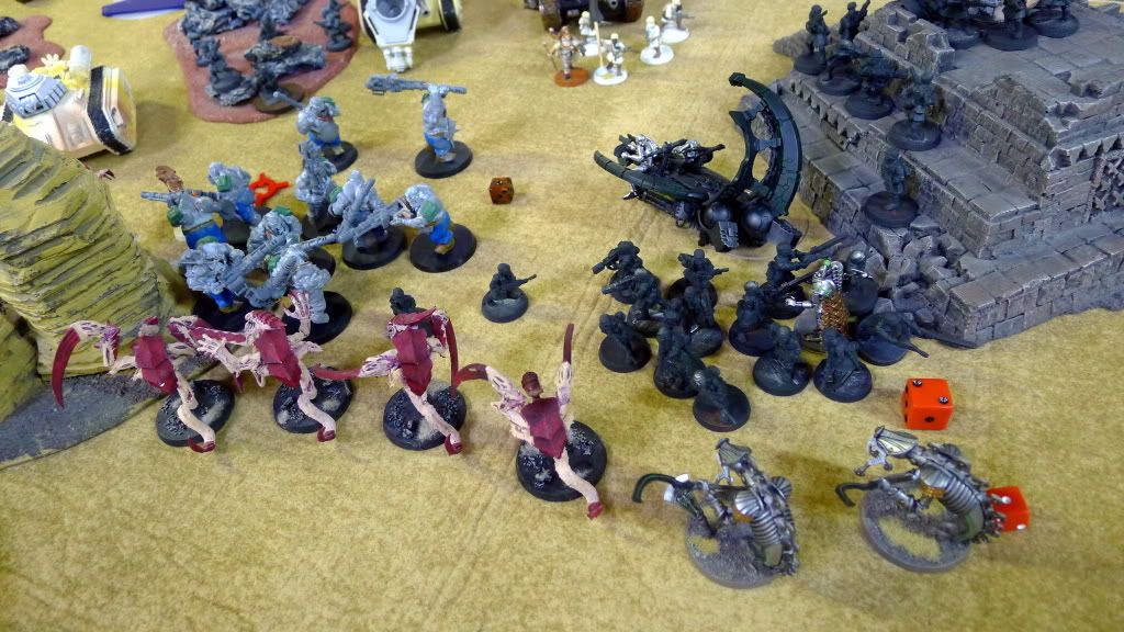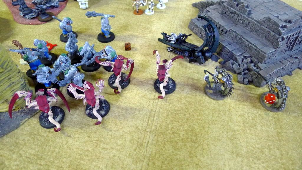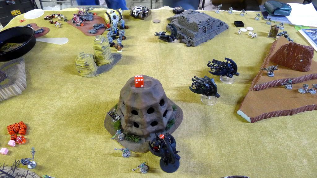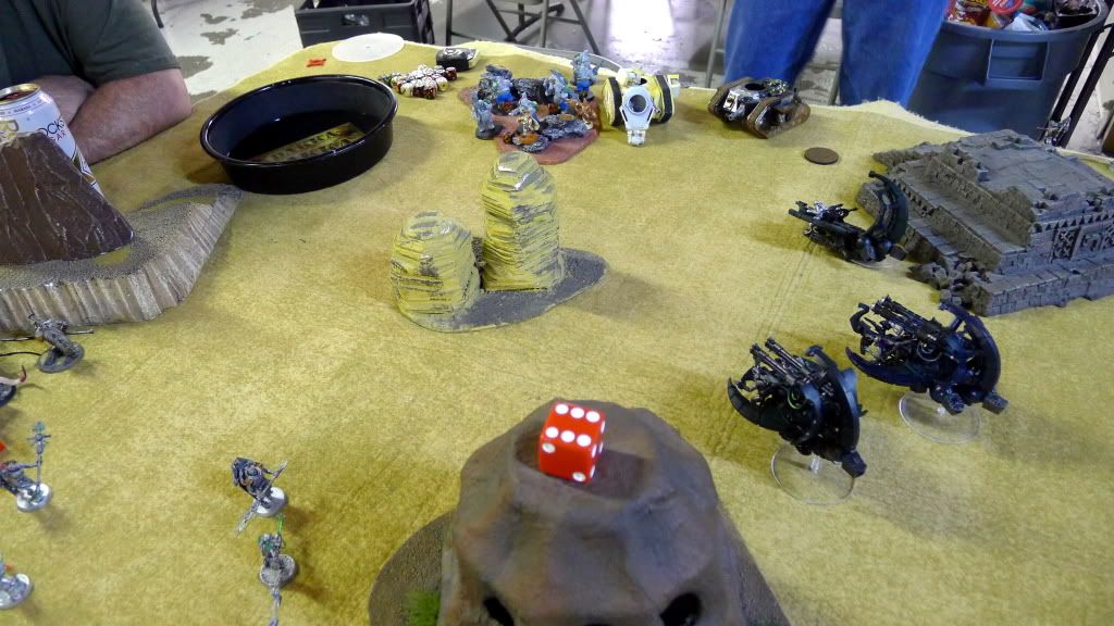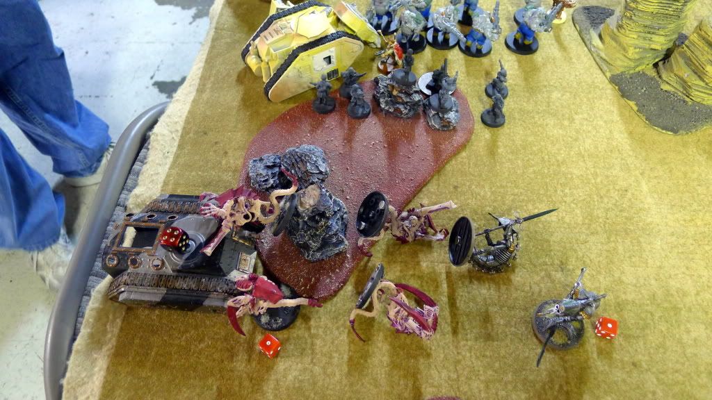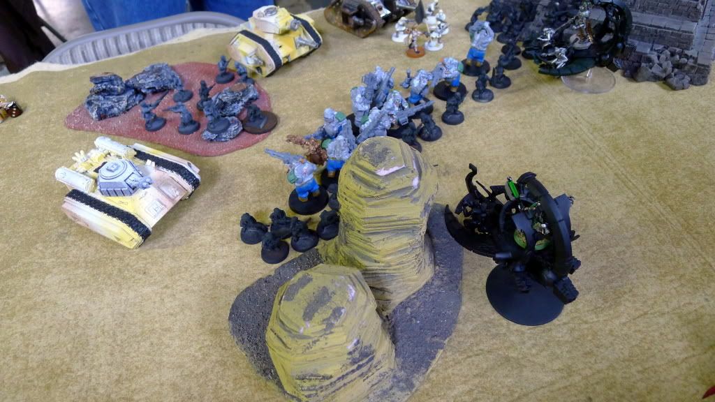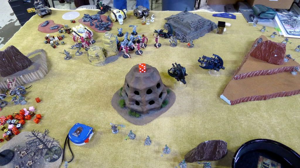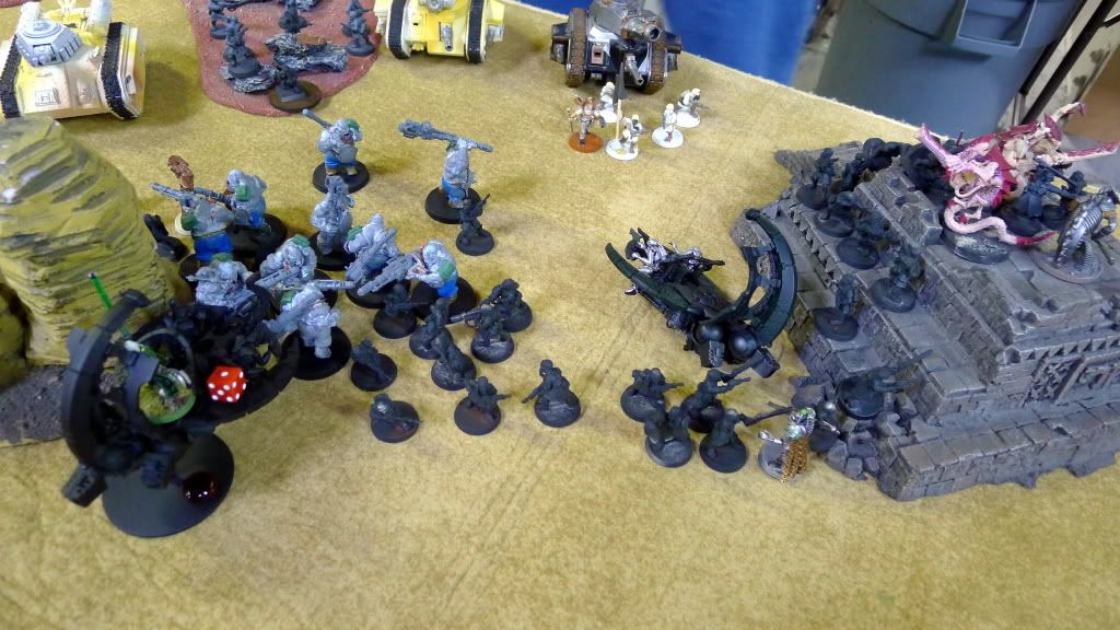 Blob squad kills 2 wraiths and puts 2W on my Overlord, though I do kill enough guardsmen to send his lone PCS fleeing.