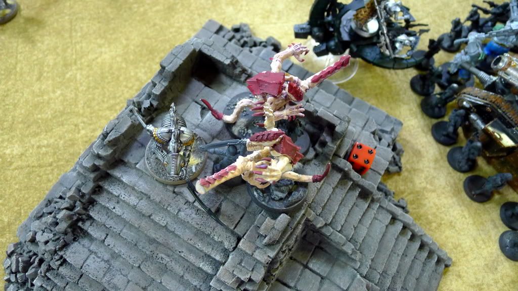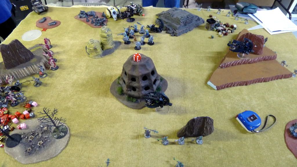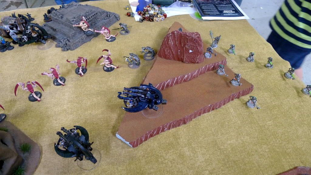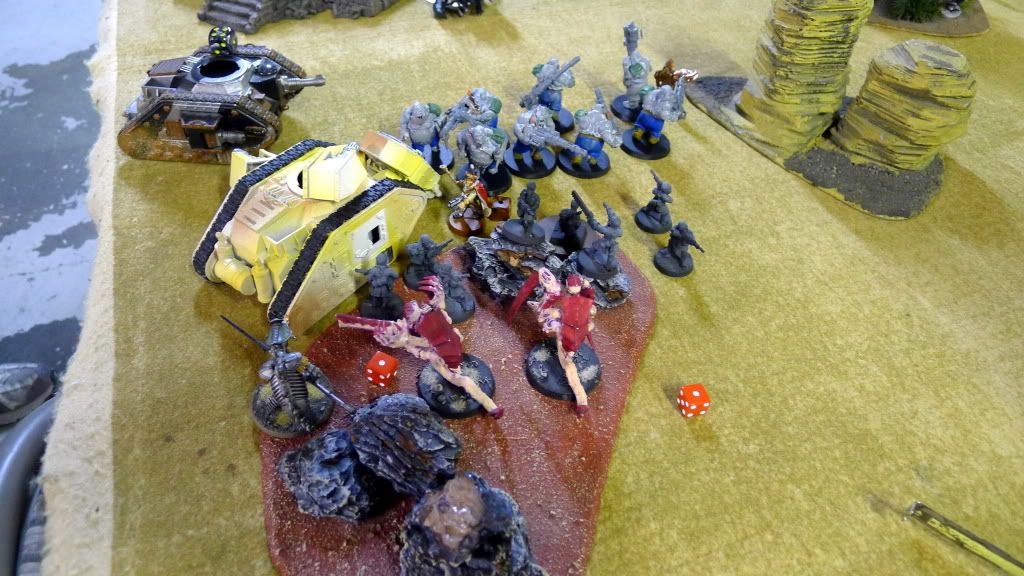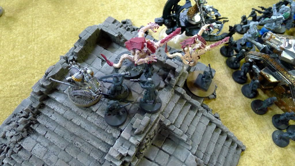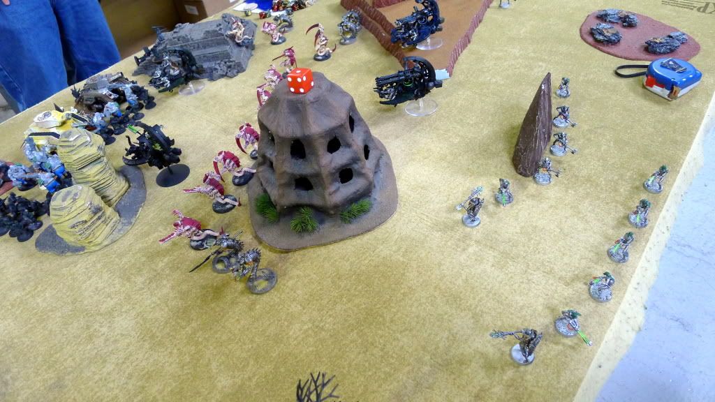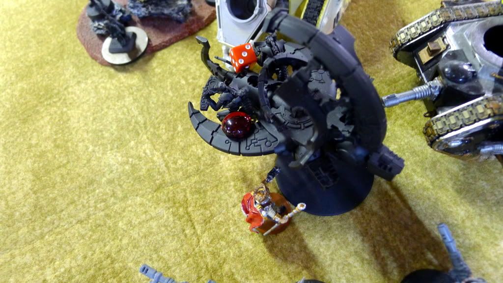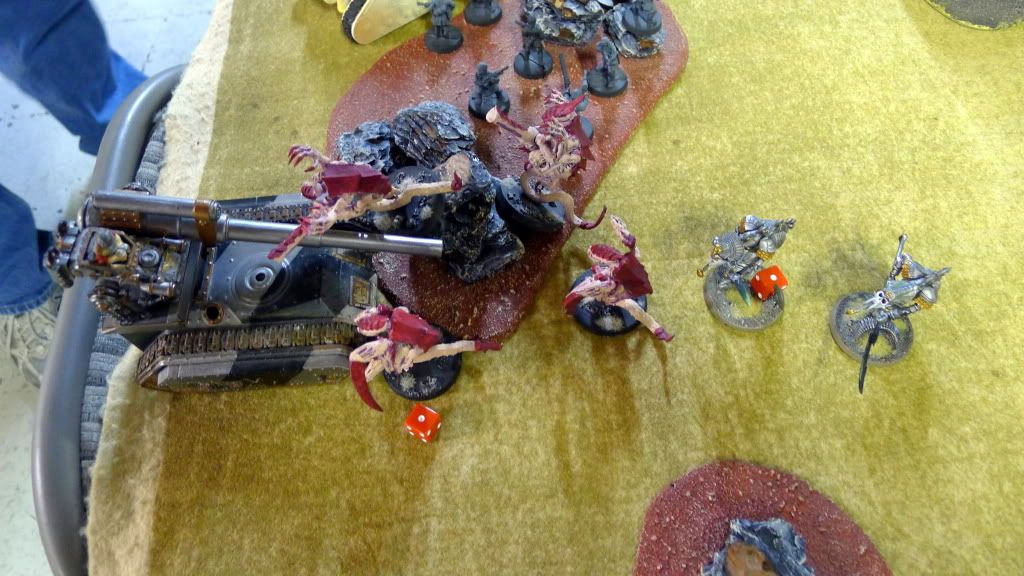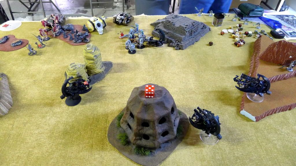 Blob squad kills 2 wraiths and puts 2W on my Overlord, though I do kill enough guardsmen to send his lone PCS fleeing.