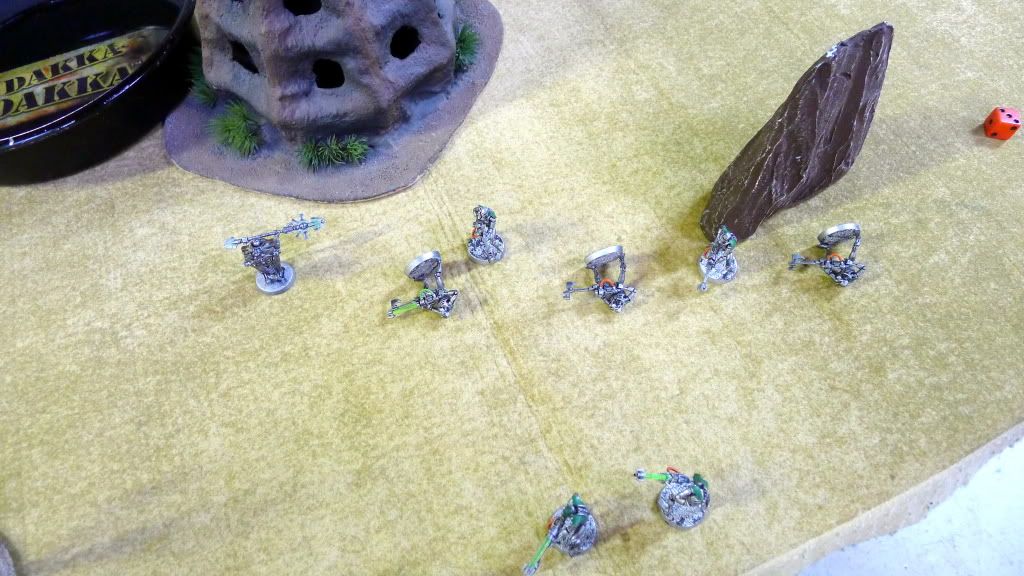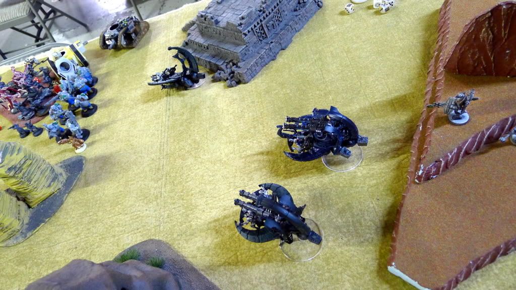 Necron movement. Annihilation barges get ready to blast some ogryns.