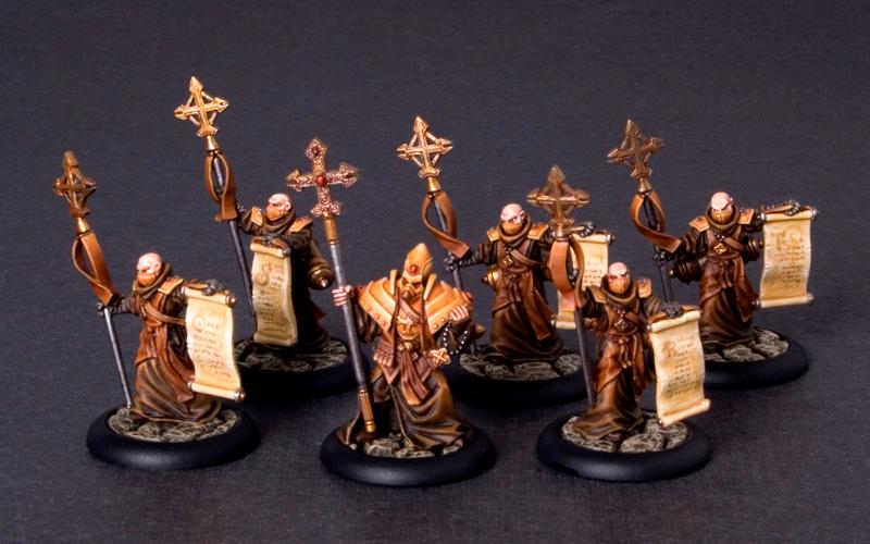 I have a fully painted Menoth army that was featured in the WARMACHINE: SUPERIORITY rule book on pages 84 and 85. It was painted by Dan Smith and Todd Arrington who were both Brushthralls (freelance painters for