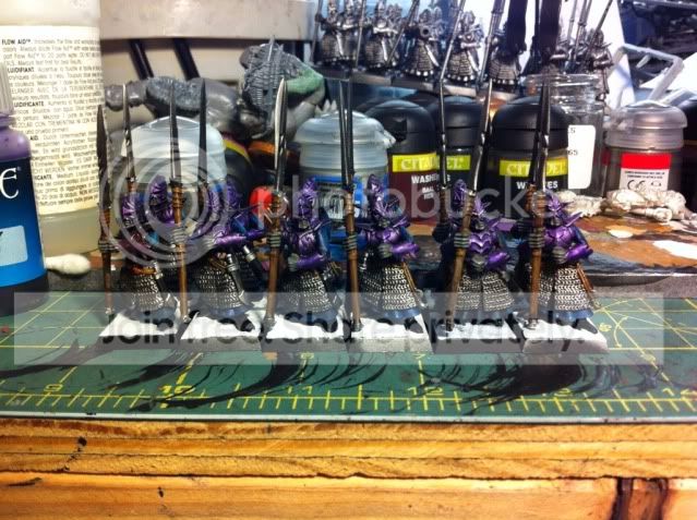12 done, 28 more to go. I'm really happy with how they look. I didn't put much effort into em so I know they could be better. I just want em done. I'm not trying to win a painting prize. This is how the majority of the army will look.