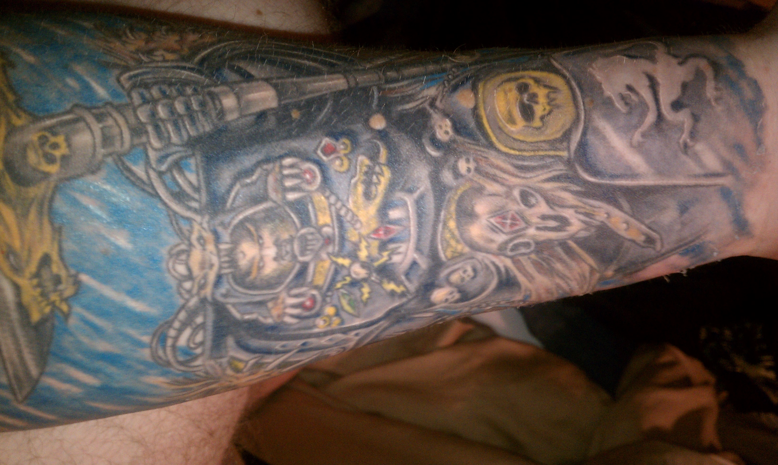 I've gotten enough ink already to break through that barrier where you almost stop caring what goes on your skin. I'm seriously contemplating getting something 40k related, but probably not quite as large and pronounced as yours is.