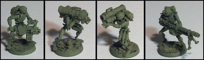 Wow Those are fantastic! Very creative and inspiring. The smoothness of the weapon poses is great, it looks as if the guns were made for them! I would love to see the finished army!