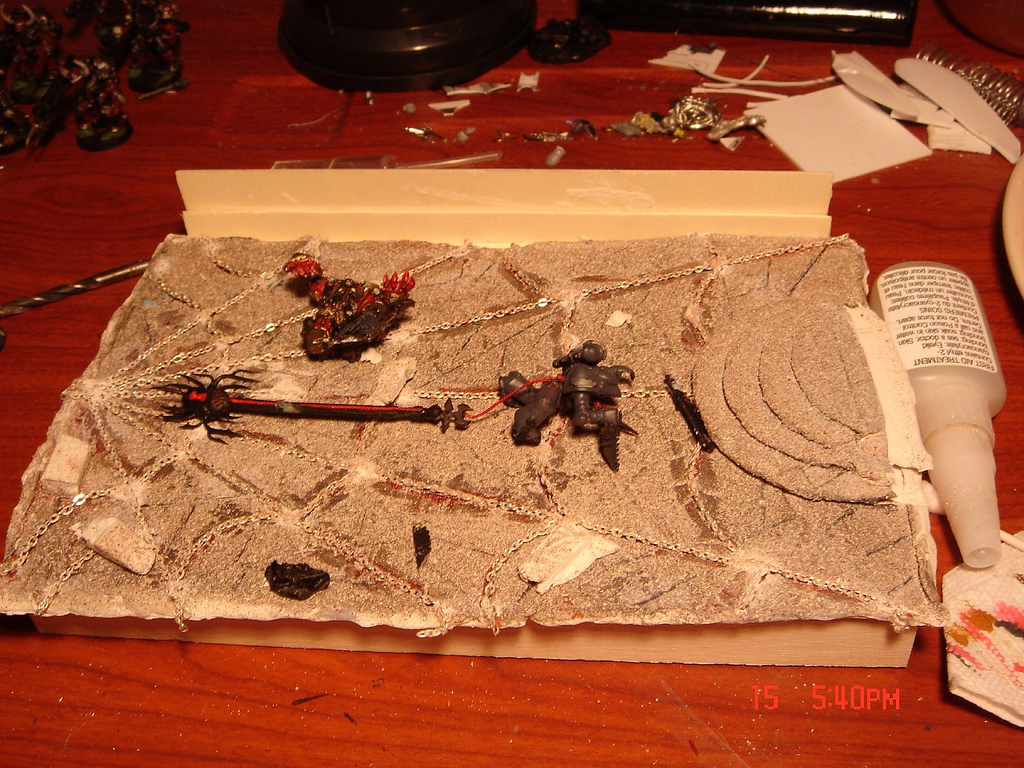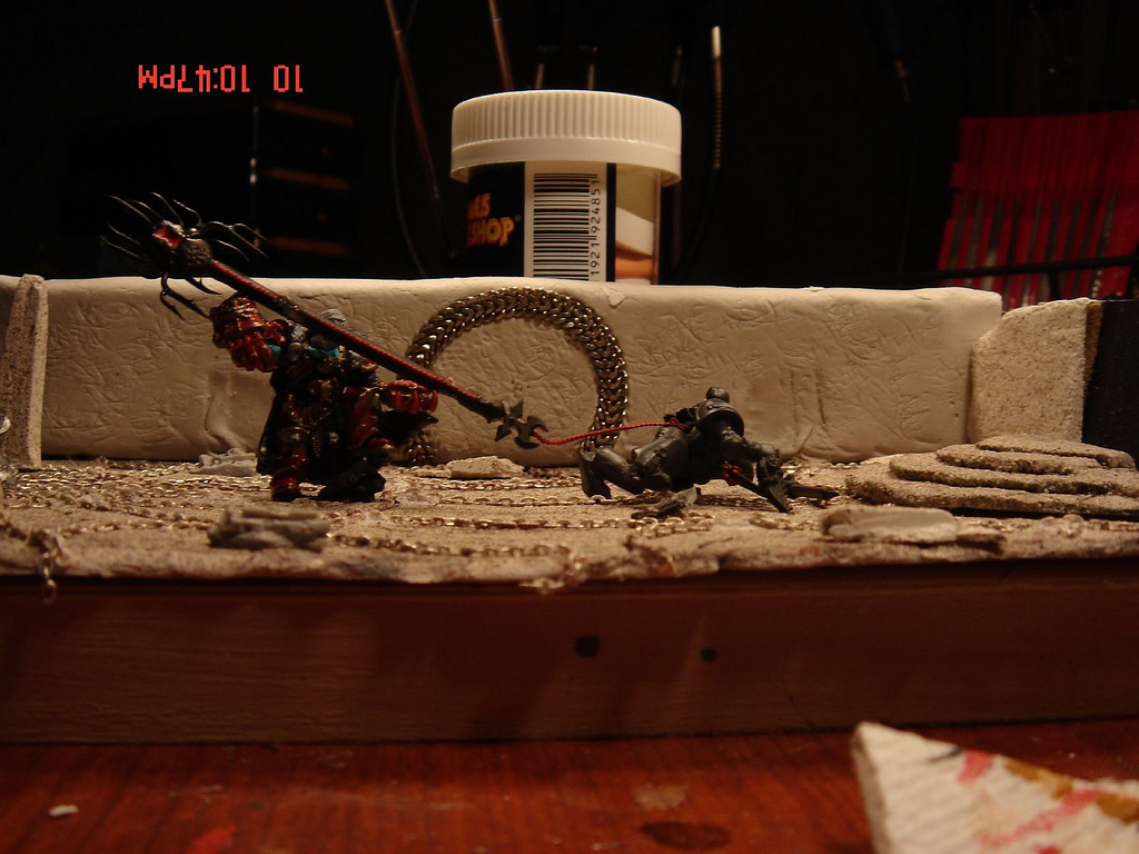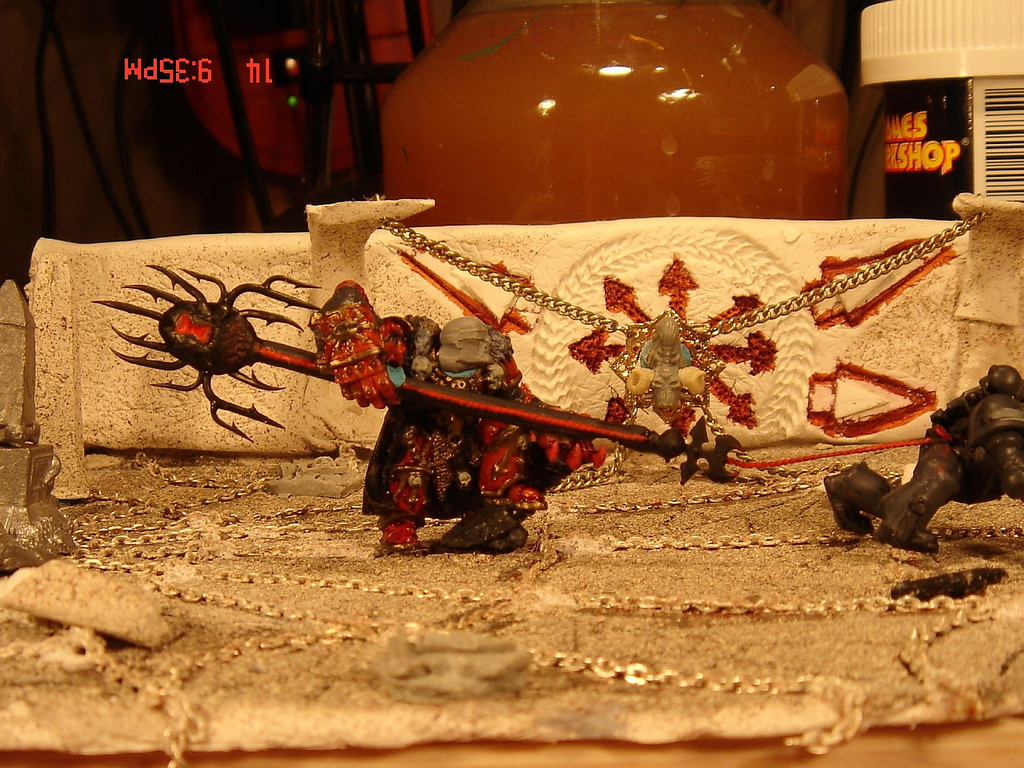 Subject: Re:Oracle of Change Chaos Lord spearing a space marine. (diorama) WIP
