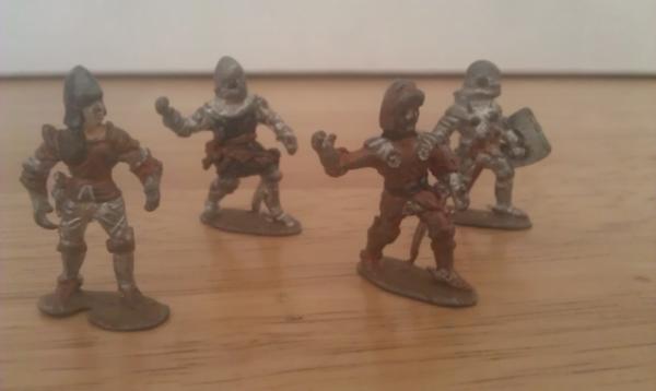 Apart from the (maybe) orkish figures, the rest could be from any fantasy game of the period (Fantasy Warriors?) and the knights likewise.