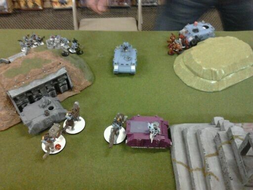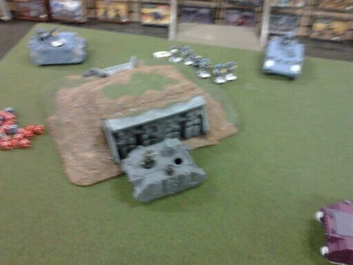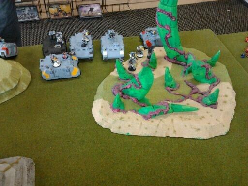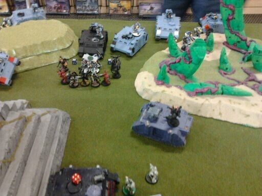 As stated I deployed sideways at the 24" line and place my daemon prince flanking the rhino. He elects to deploy nothing.