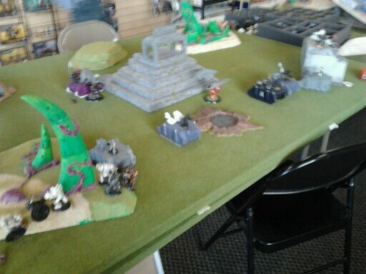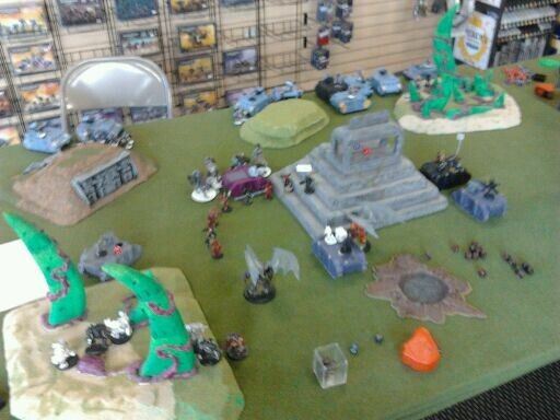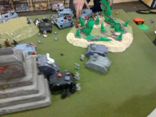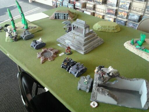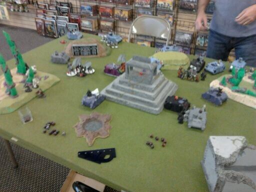 Game three against Necrons he had a tremorstave list with 2 kitted out lords on command barge's. When the smoke cleared chaos space marines took the primary and secondary but failing the roll to hit on the final turn to push him off the tertiary objective cost me those 3 points. 17 to me