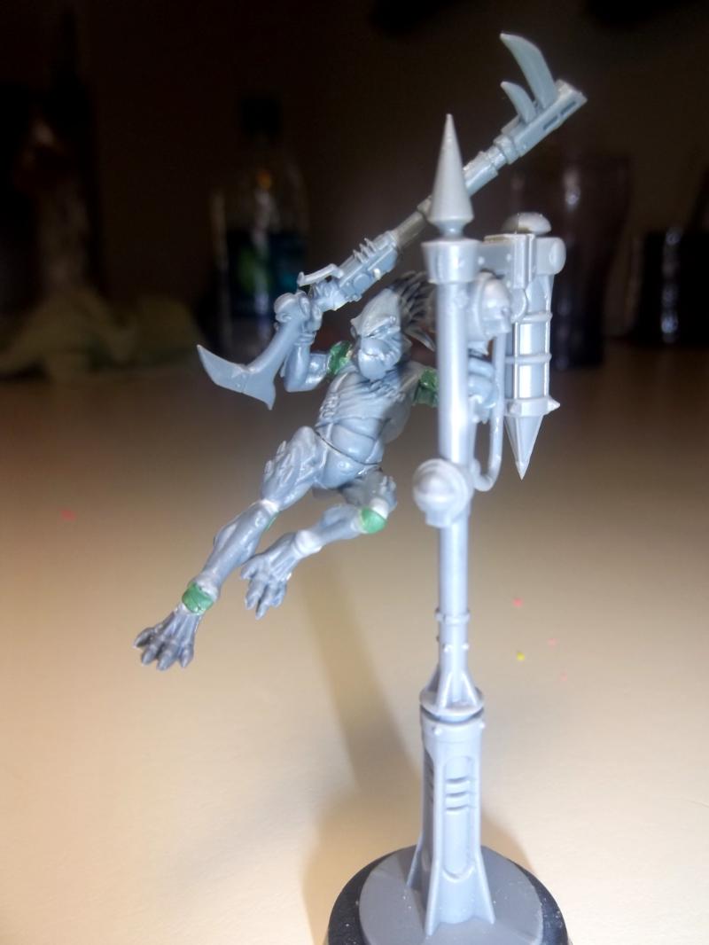 Nice work on reposing the kroot. I always felt they needed a bit more dynamic models. And great job on the thunderhawk there  nice way to hide the base of the pole inside the building