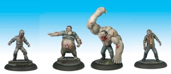 They're currently working on a set of plastic multi-part 28mm zombies that will be on a sprue with 4 different bodies, 6 different sets of arms and 8 different heads. Each set of arms will be designed to fit every body not only in positions but in clothing too. All 8 heads are supposed to compliment each body/arm combination. Lots of variety, by the sound of it! Think the Wargames Factory zombies, but not terrible