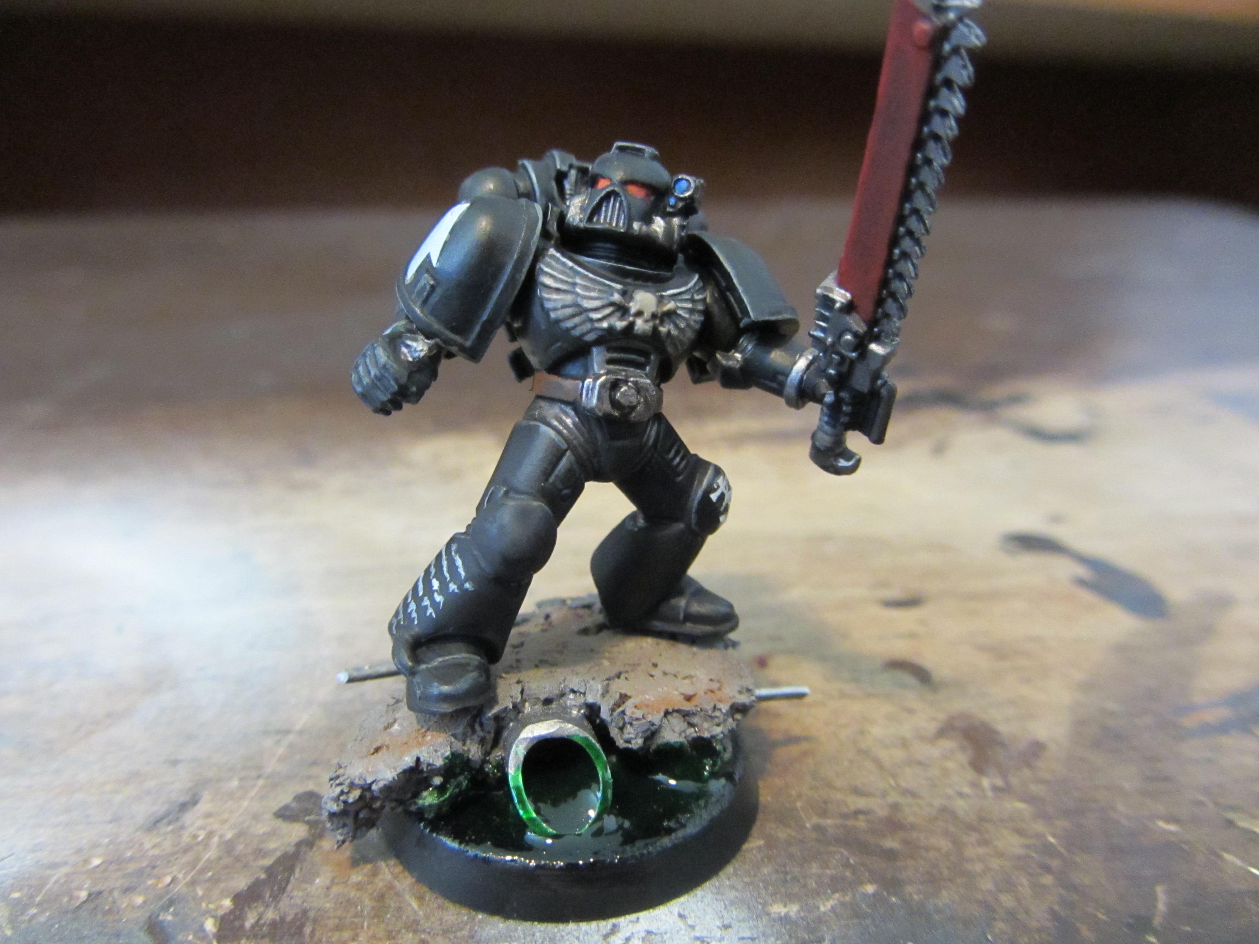 Would like to get some feedback on this guy. I am trying different options for my Raven Guard army and this is the first. I am think of maybe trying more of a grey/black armor instead. This also gave me a chance to test out my highlighting which has improved but still need to work at it.