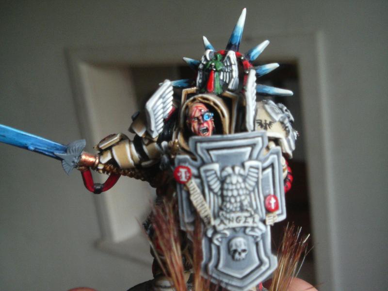 I used the terminator captain model, a death company thunder hammer (all I had), and the Dark Angels storm shield.