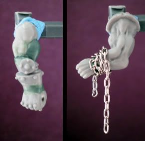 The chains are just a length of real chain secured to his arm with some greenstuff and a few dots of superglue.