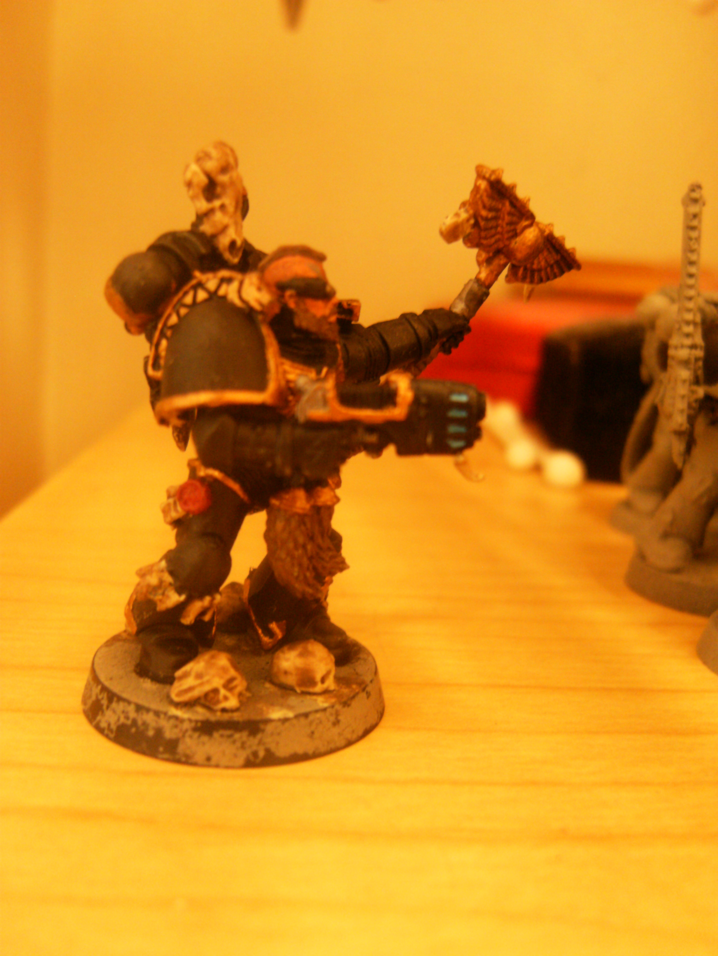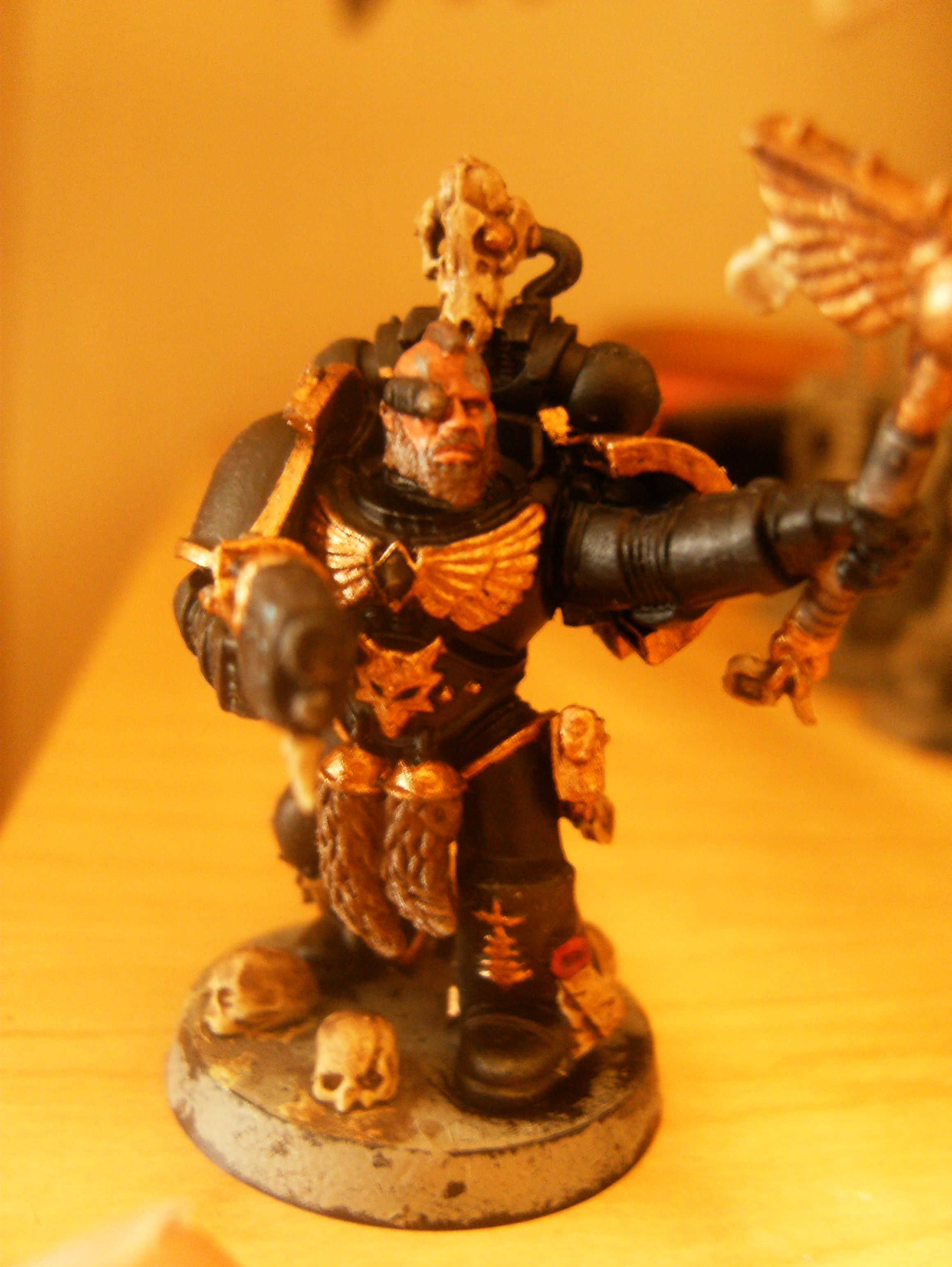 This is my first Wolf Priest. So working with black and gold is a first. I don't want spend 20$ just for Ulrik the Slayer's head. So I just did a normal head. I hope it fits.
