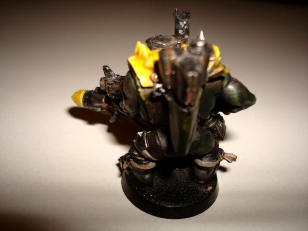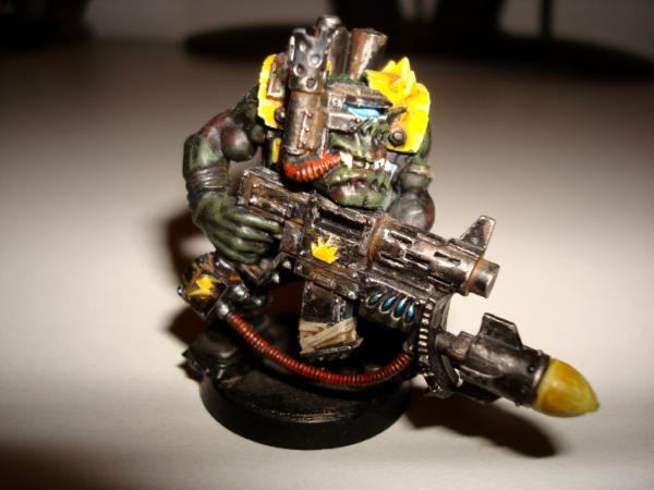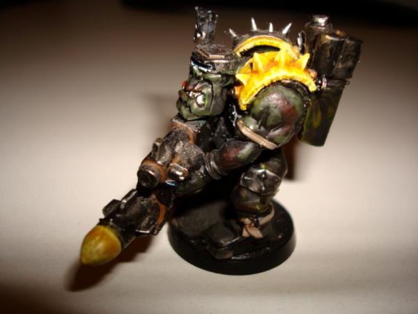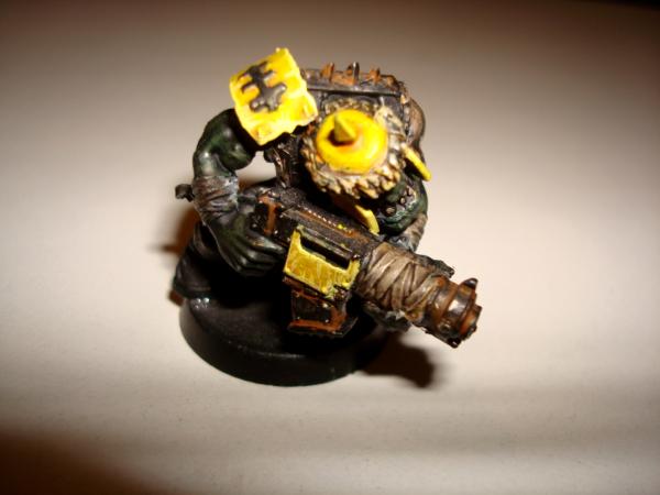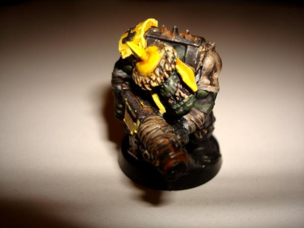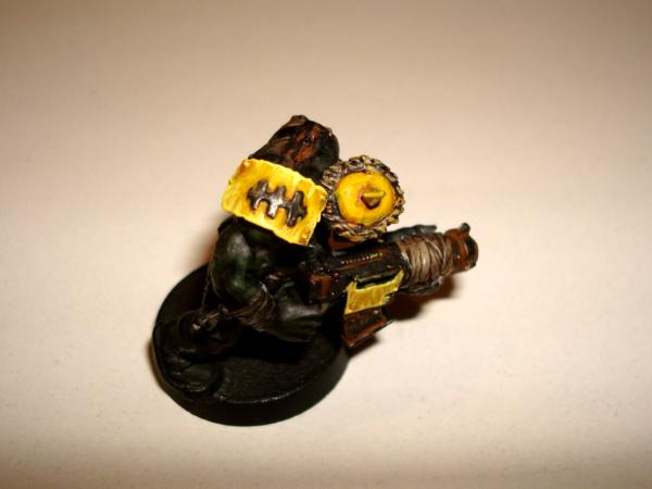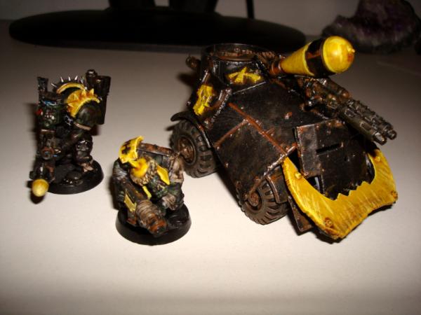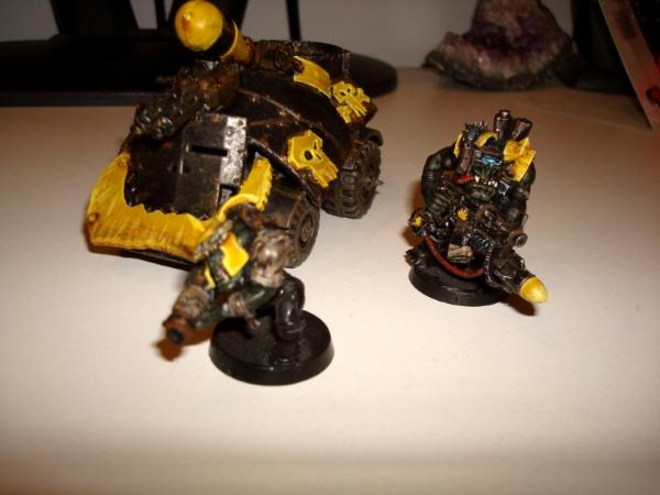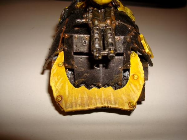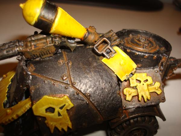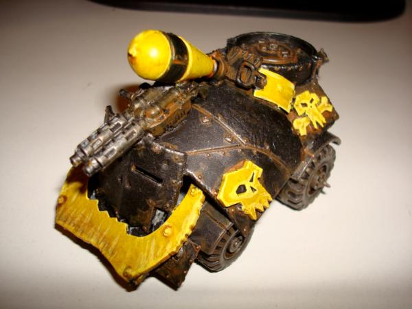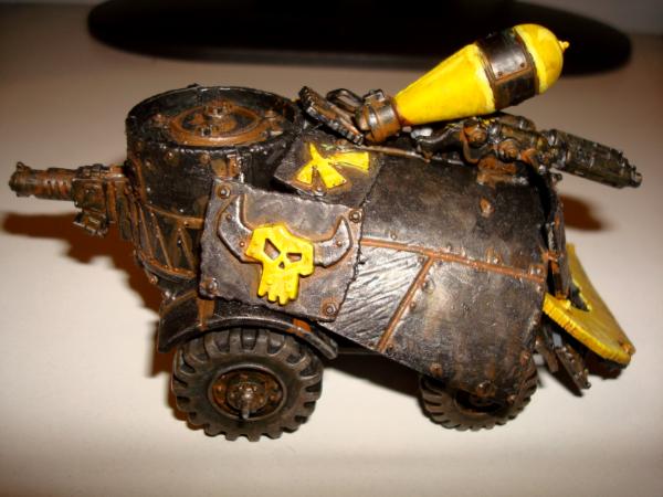 Is that little vehicle a scratchbuild? It looks fantastic - really orky! I like your rust effects too, though I reckon it could do with a little paint chipping - maybe sponge weathering with a metallic colour? The 'face' on the front of it is brill