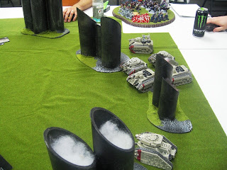 I end up at a table with a bunch of impassable terrain and get to choose the first deployment zone. Another recount of this battle can be found here by hyv3mynd - I used some of his pics in this but provide my own perspective.