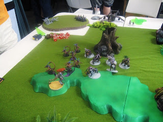 here for list. Unfortunately, I realized when I arrived in Rochester at the in-laws that I had misplaces 10 Horrors somewhere but I had thankfully brought an extra set of Fiends with me. In the end I took a list close to my original proposition with Horrors instead of Daemonettes - in retrospect I think I should have nabbed the Daemonettes for this kind of game but they Horrors led to some epic moments. The final list was: