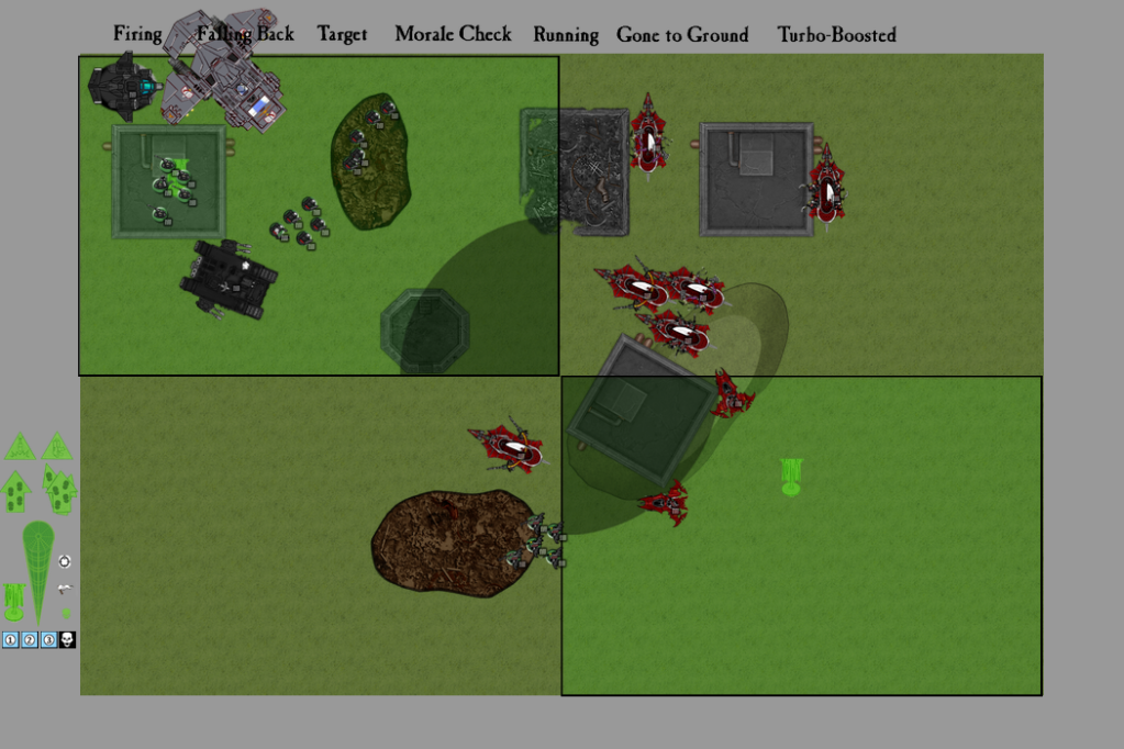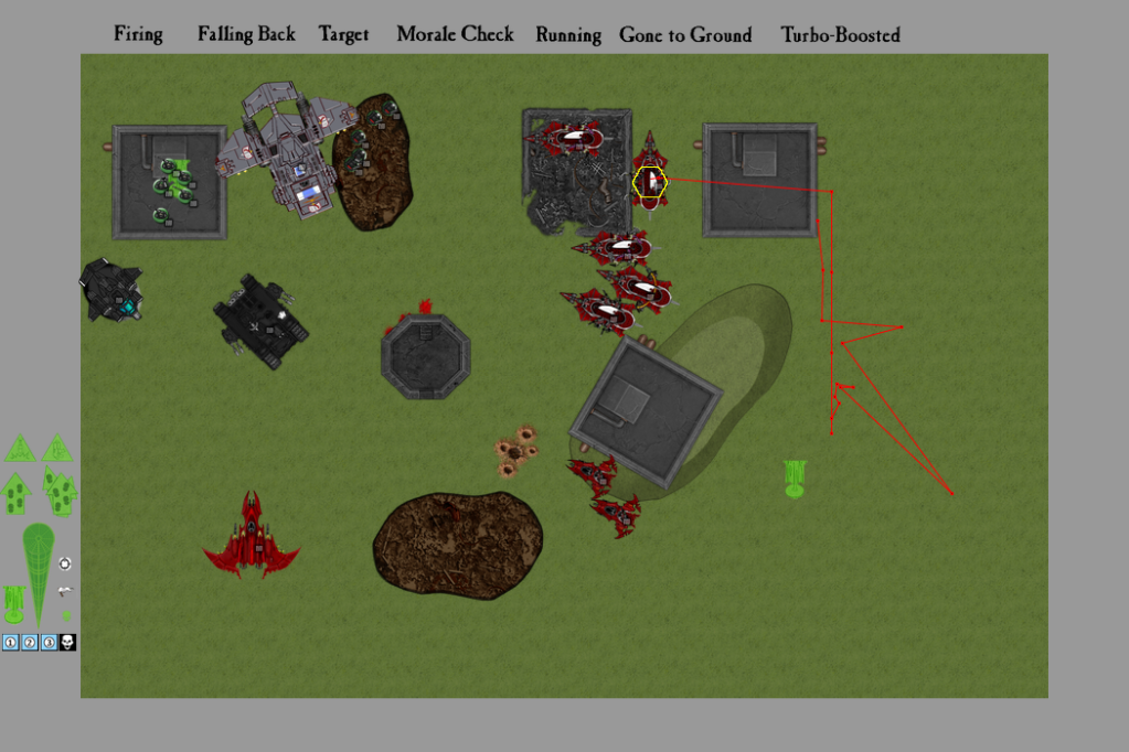 From the view screen of the blessed Land Raider, Lord Mikkol of the Seekers chapter watched as the Eldar pirates came onwards, unfazed by the loss of one of their craft. They were bold and bloodthirsty, and obviously wanted to seek battle with him and his brothers. The Emperor’s chosen would be all too happy to oblige them.