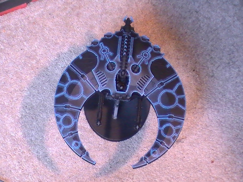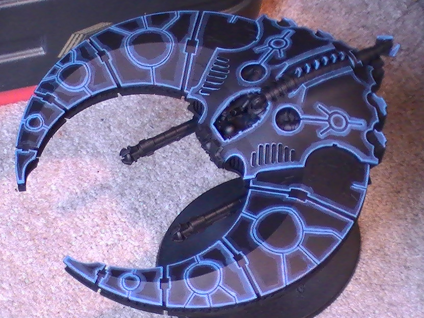 Best way to ditch the TRON vibe is blending. If you extend the effect slightly and smooth out the gradients (the latter point being the more important), it will look more like a dark blue translucent material and less like a black ship with EL wire on the edges. I don't think it looks particularly bad, like this, but stark edge-lining is not the way to go, for what you seem to want.