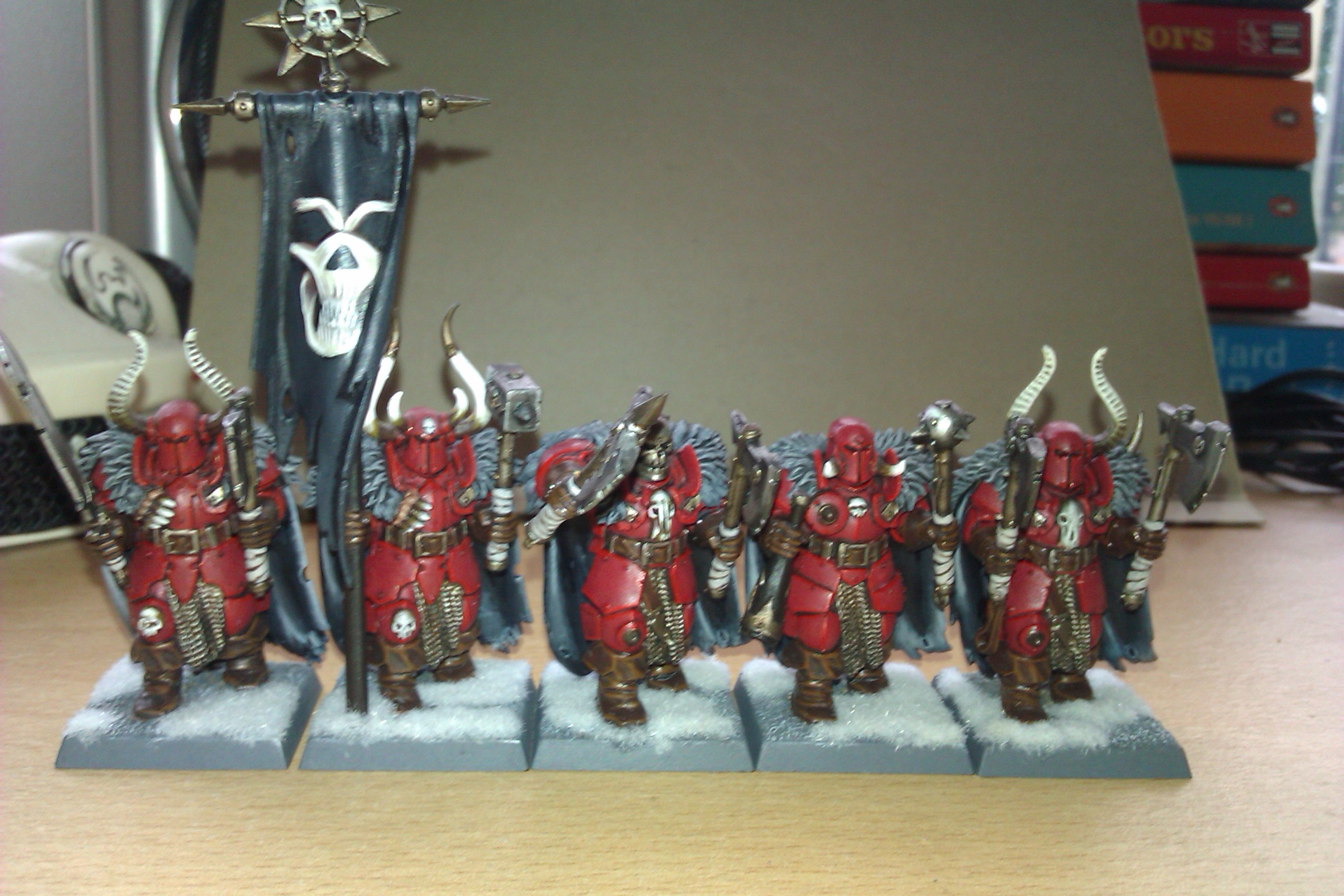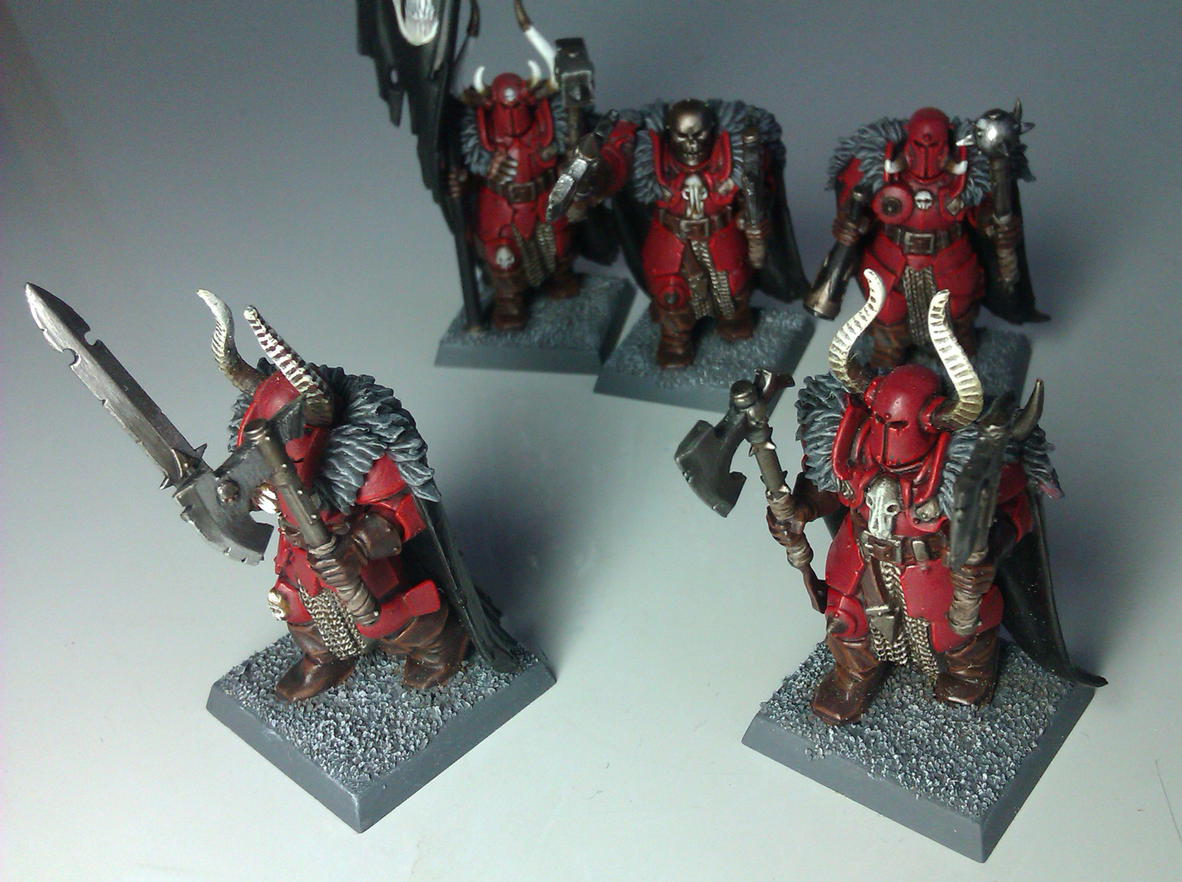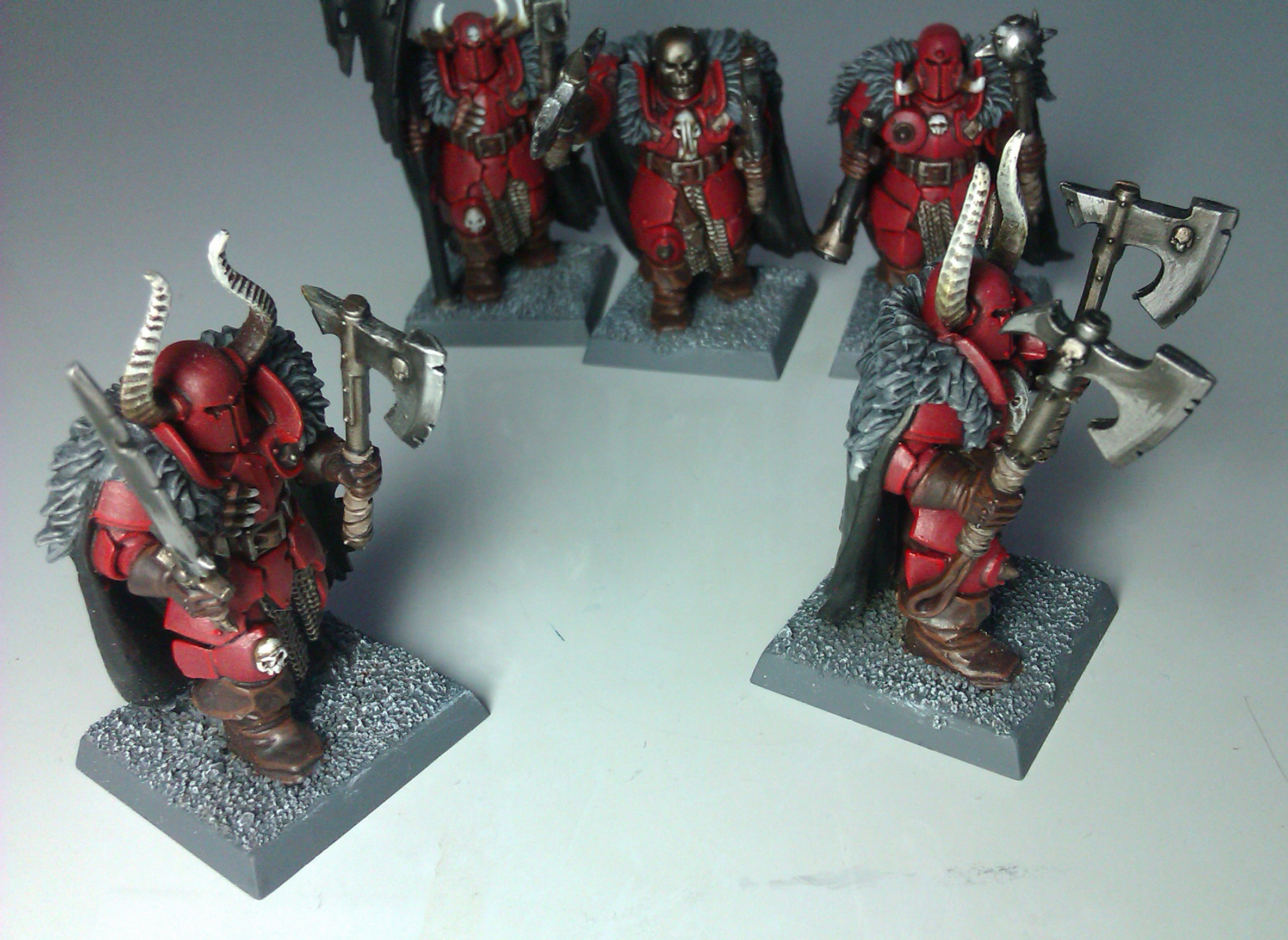So far the Khorne Warriors have the most work done with a third of the unit almost completed. The last elements to add are snow on the bases and painting the cloaks.