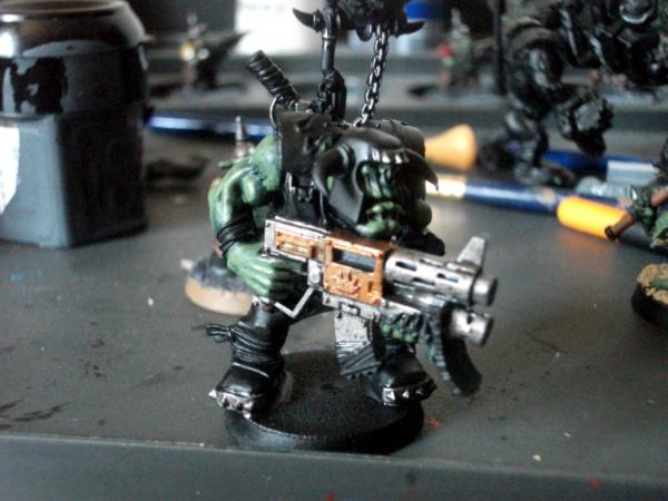 This is my Flash Git, and he was quite an easy conversion, first i got a kombi rokkit weapon, then cut out the rokkit, cable and power box, and stuck on a barrel from a slugga. I wont use him untill ive got a whole squad of them.