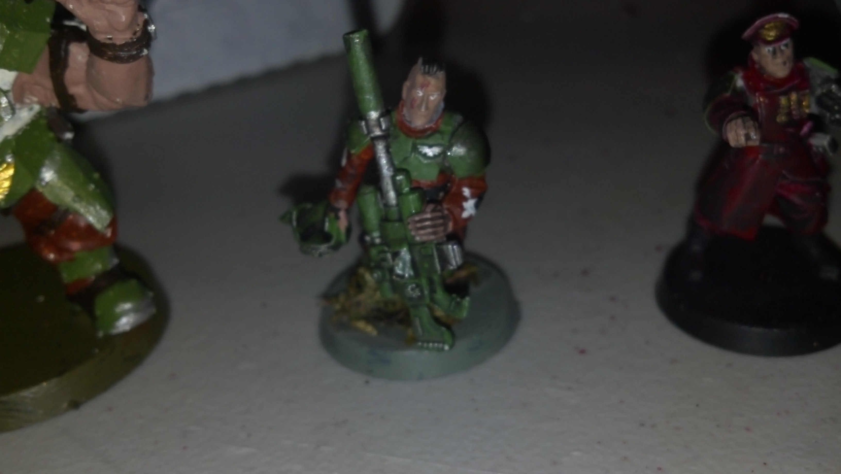 what are you using for a primer? It looks like you are getting an uneven finish with your models. I'm sure you are aware that there is much to learn when it comes to painting, but getting the procedure/process down is the first step. Even if you haven't acquired a lot of experience with techniques like washing and such, you can still improve your models by following a good tutorial on the basics. I'll see if I can't find an example for you.