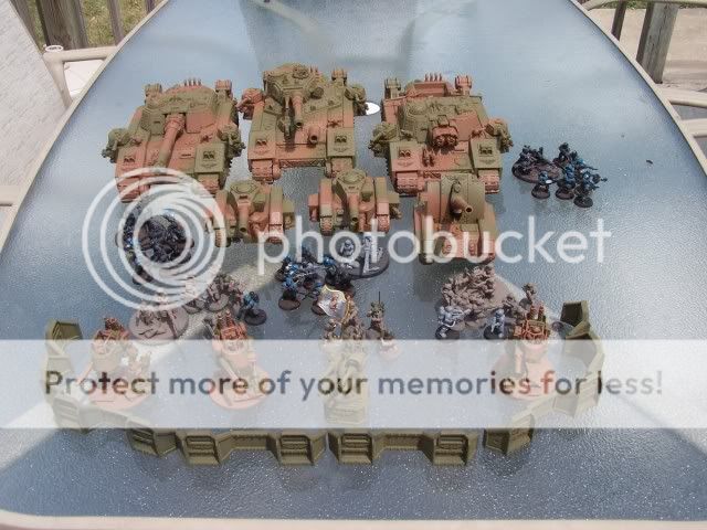 Here are the boys so far. I'm about to build another Platoon command squad, and a Leman Russ Punisher.