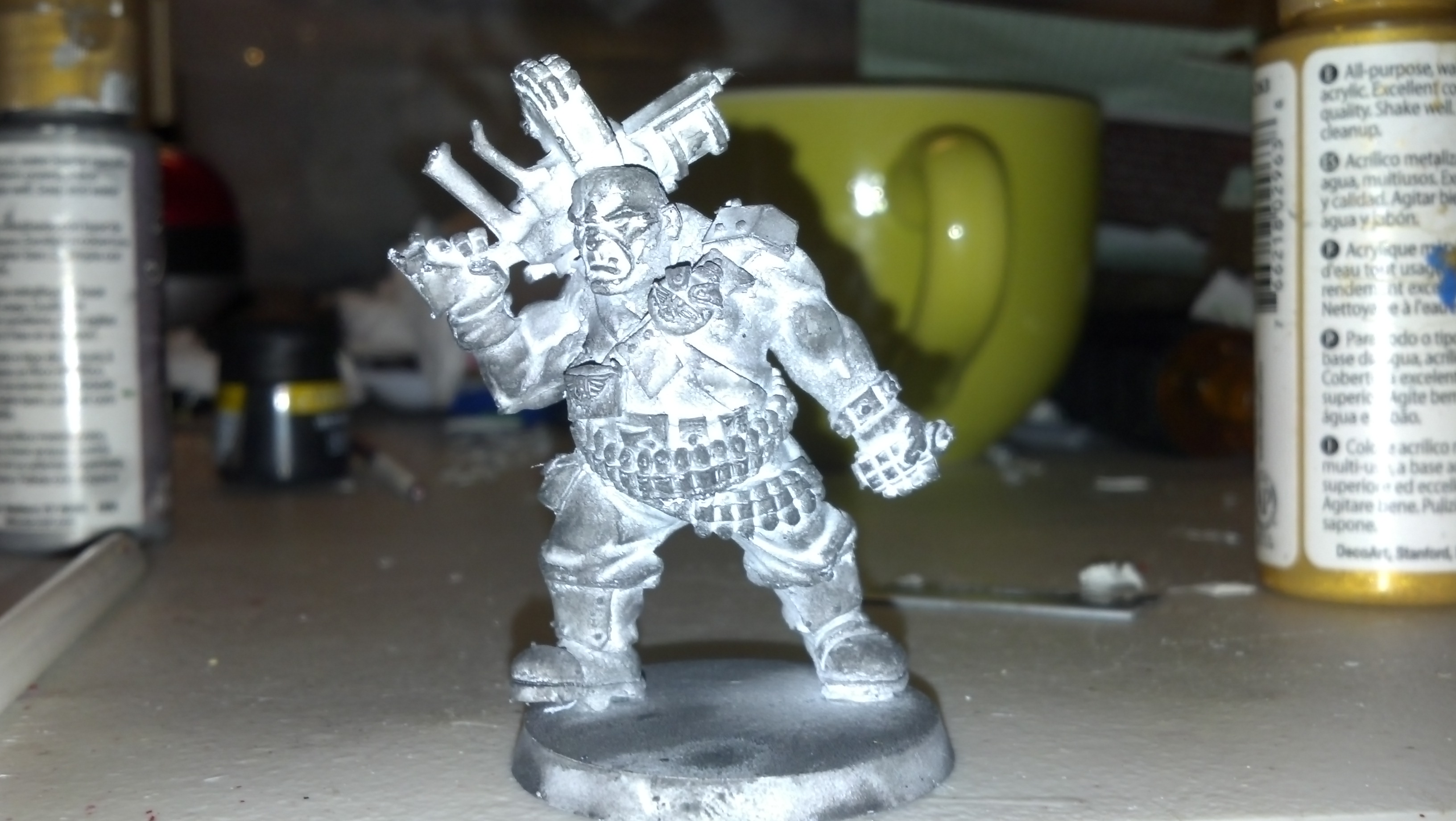 Those pictures you posted with the undercoated ogryn look a bit odd. All the white seems to have pooled in the recesses of the miniature. When you spraycoat them, do you make sure that the primer covers the miniatures in an even fashion?