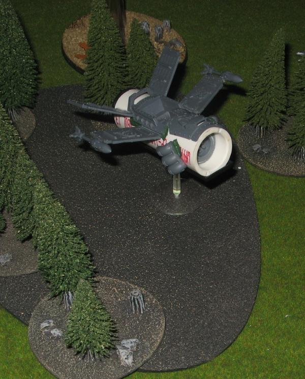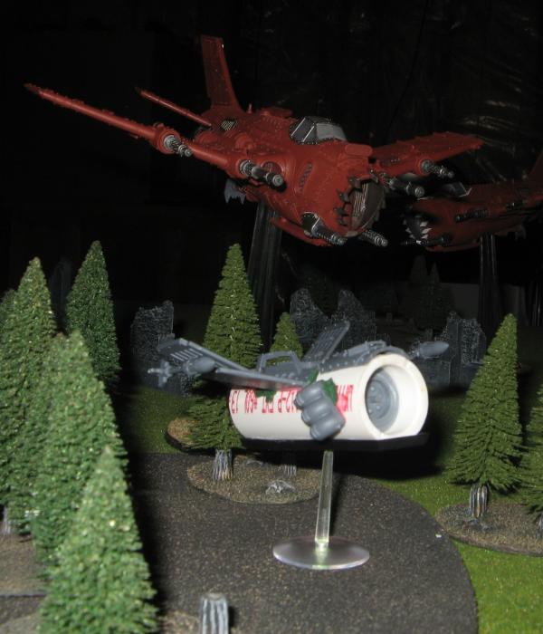Meanwhyle do you mind to give me the specific lenght of the big dakkajet in the background? I mean, how much inches from nose to tail, and from the tip of a wing to another? I want to scratch build one for me, and was wondering about its size...
