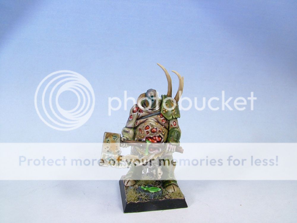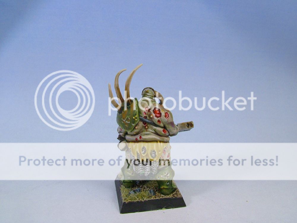 I'm really happy with this one. He only took me 4-5 hours, which is fast for me. Also, the first reaction of everyone who has seen this model has been along the lines of "urgh, he's so gross". Considering that he's a devotee of Nurgle, I think that's a good thing  !