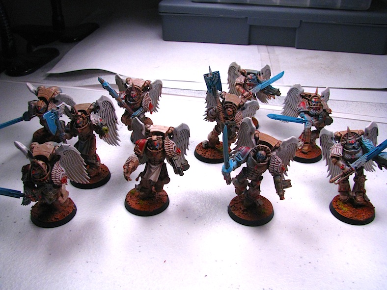 ForgeMarine wrote:Well, in order to fund my other armies, im looking to sell/trade off my beloved sanguinary guard. There are 10 in total, with 2x with melta pistols and 1x with a power fist. These guys got a big boost in 6th edition with power weapons going to AP3, and these guys have a 2+ save! These were studio painted and took a lot of time to finish. Hope you enjoy, feel free to contact me with any questions