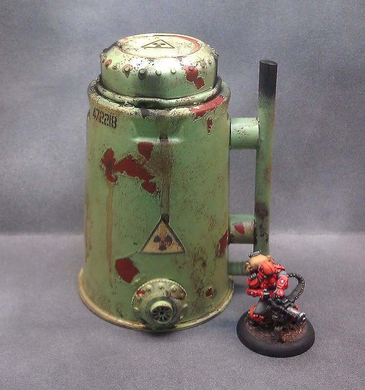 I like it. Nice weathering! The hazard sign could be a bit more crisp iand a model or something to show scale would help too but I like the colors and the weathering using a muted color over a bright one.