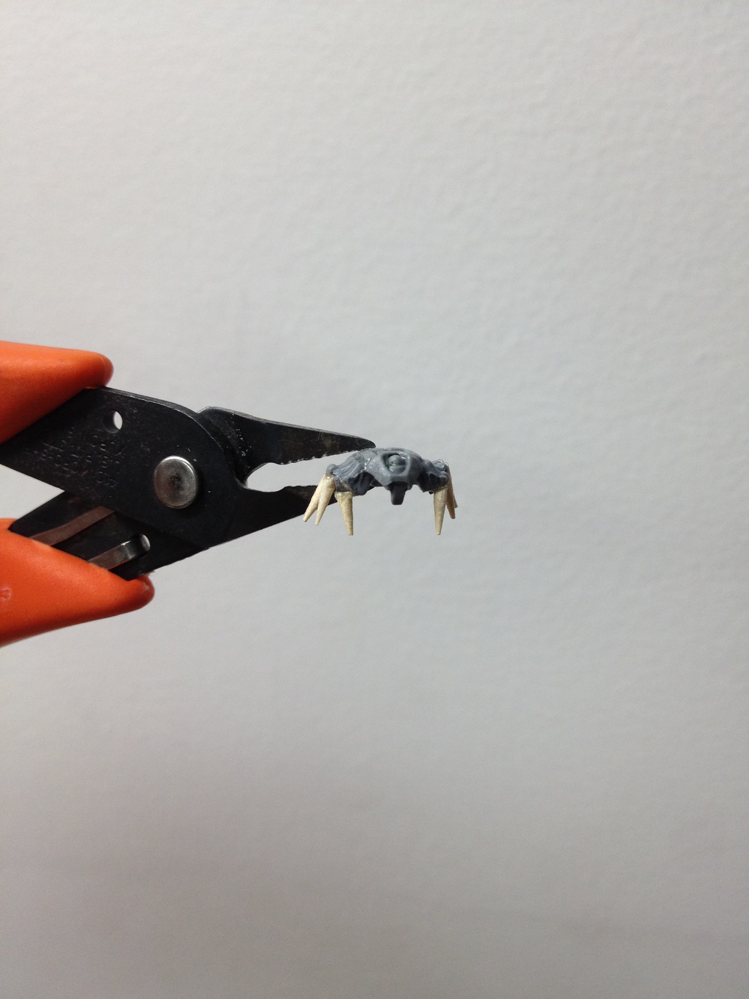 I tried cutting the tips of pins but it proves to be quite difficult and doesn't look right on the scarab without a joint in between. I thought about cutting sprue pieces but cutting that small gets to be very difficult (for me at least), and making detail is nearly impossible.
