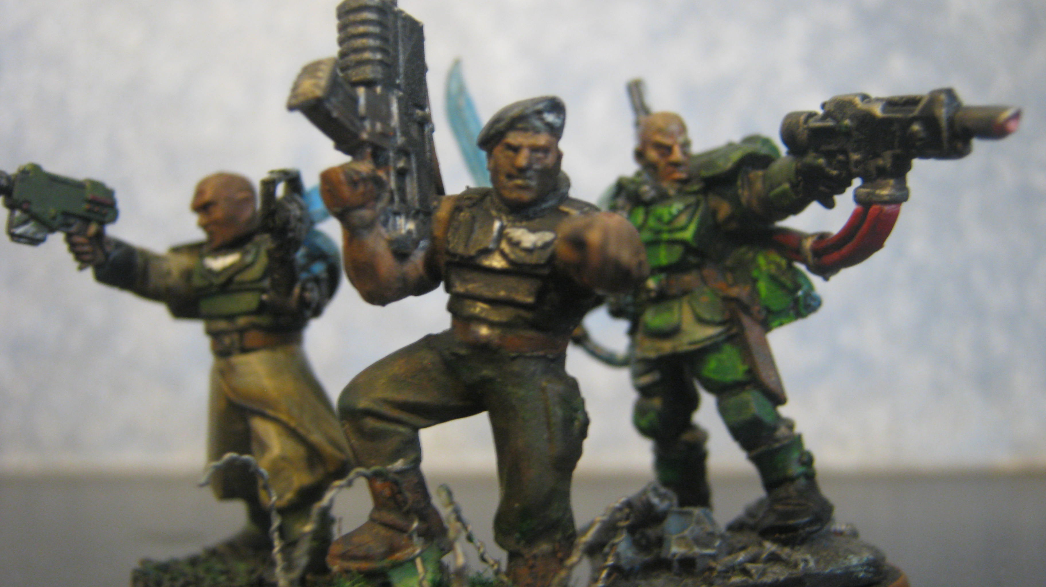 Nice and dirty just like a good soldier should be when in the field. Love the Stallone with the nice wooden bolter handle. He reminds me of the beginning of Demolition man.