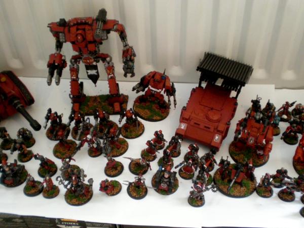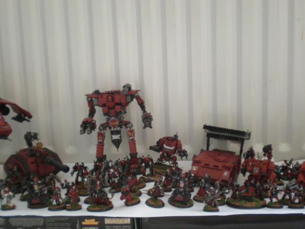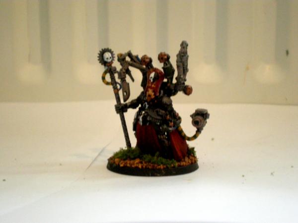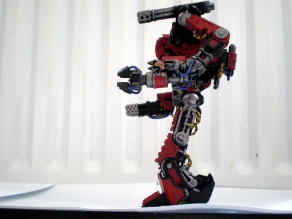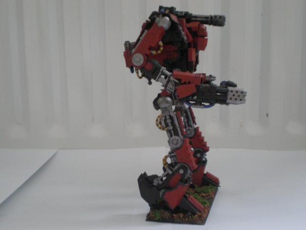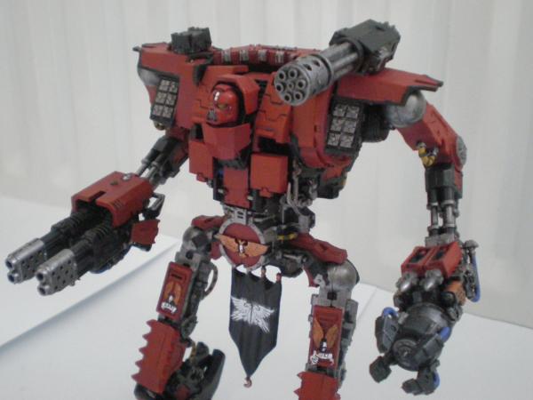 Here he is standing with the rest of my explorator force, so you can get an idea of how big he is (pretty big, he gives Dreadknights an inferiority complex)