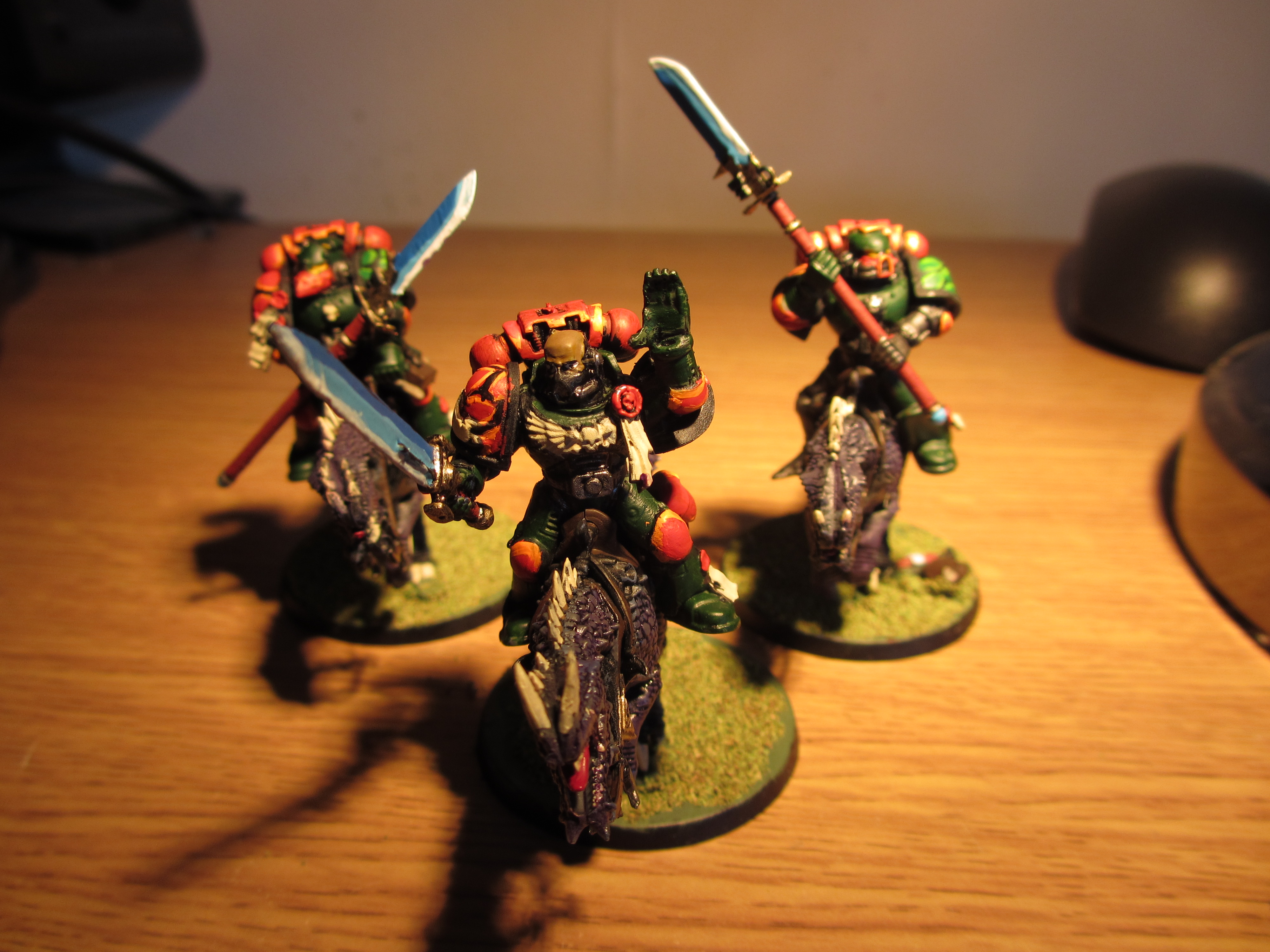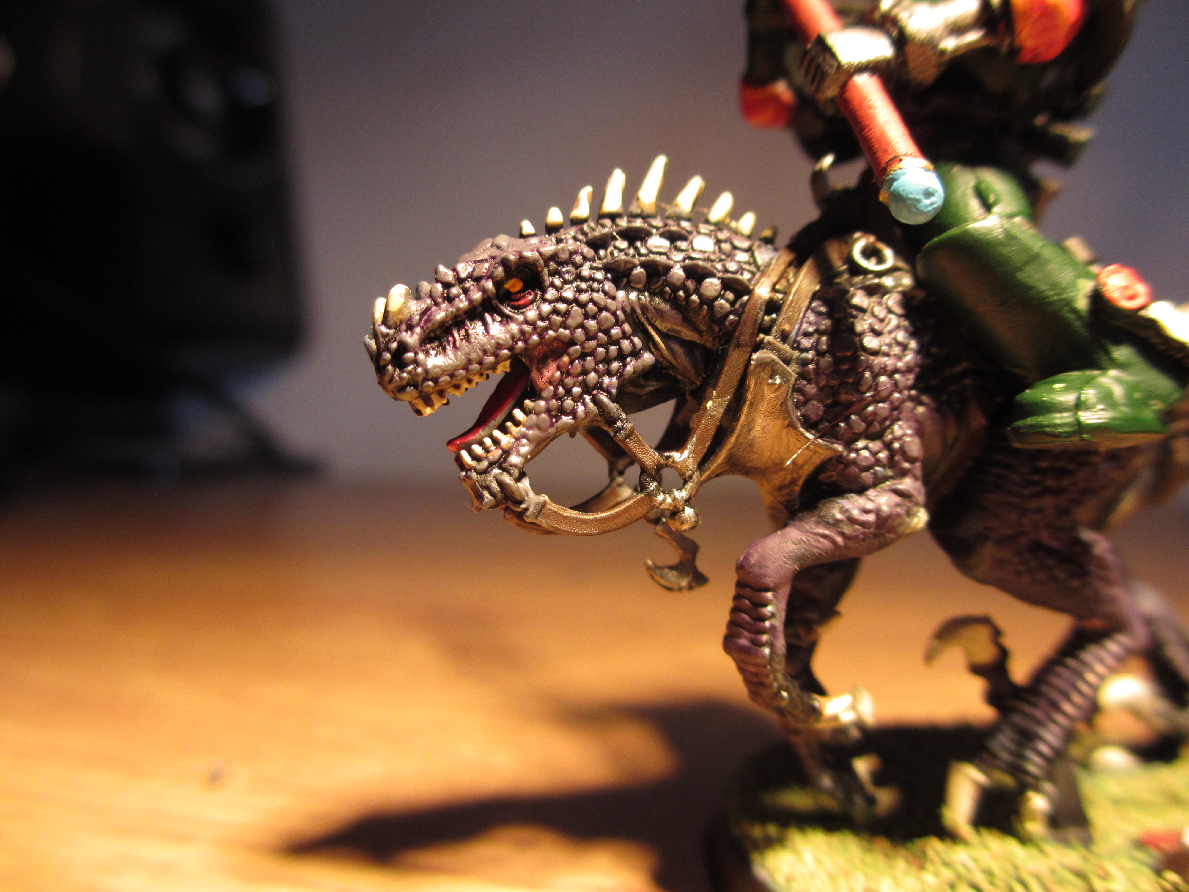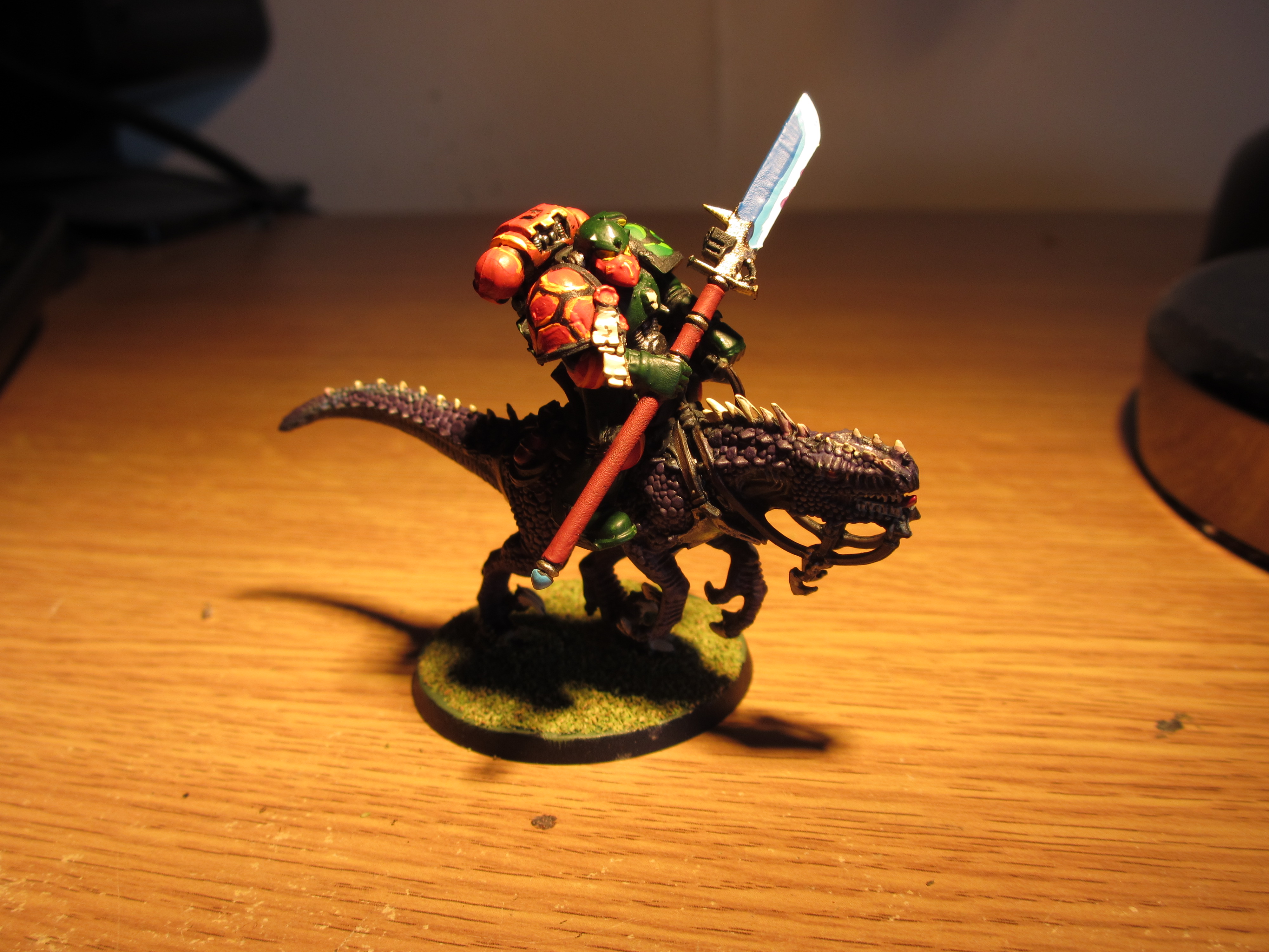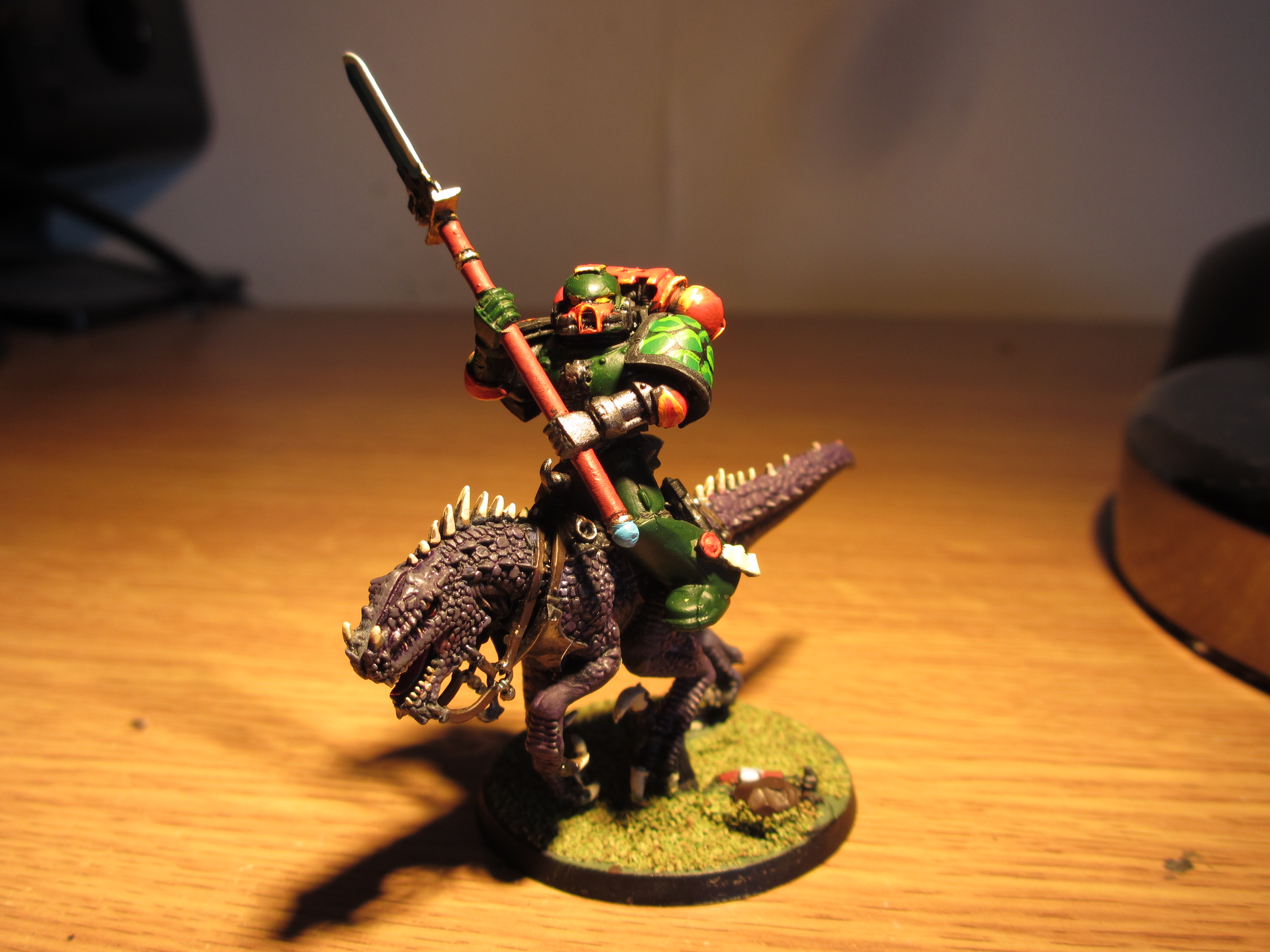 Really like the paint scheme...the colors work well together. Not sold on marines mounted on lizards though. Personally marines mounted on anything except bikes seems funny to me, since the ceramite suits are supposed to be hulking heaps of heavy metal....seems like it would crush the vertebrae of a dinosaur....