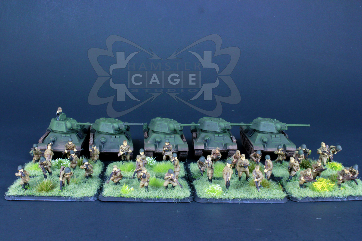 hey everyone! I finished my first ever group of FoW for a friend, some of the infantry were Plastic Solsier, and some were pewter, not sure what company, the T-34's were Plastic Soldier, and came with 76 and 85 turrets(the 76's were 1942), overall I wish that the models had had a little better detail on them, and after taking these pics, I went back and painted the shoulder tabs red(didn't retake the pics). I look forward to the next set of these!