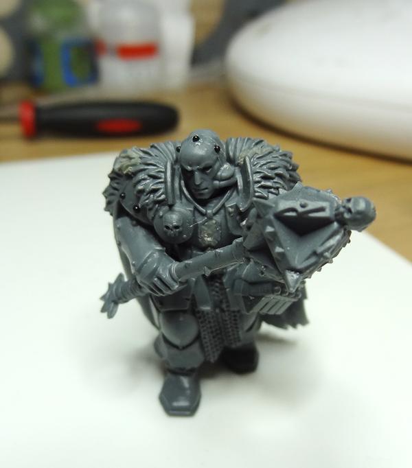 Cheers! Quite pleased with it, going to be painted up as a metal death-mask covering a ruined face, which is why it is riveted to his head.