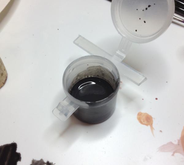 I then create a wash using Baal red, Leviathan purple and some Reikland fleshshade.