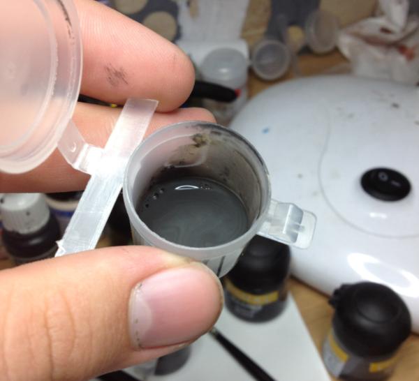 First up, nice clean(ish) painting area, I have a sheet of plasticard down as a painting surface, I can mix paint directly on it, then just clean it right off after.