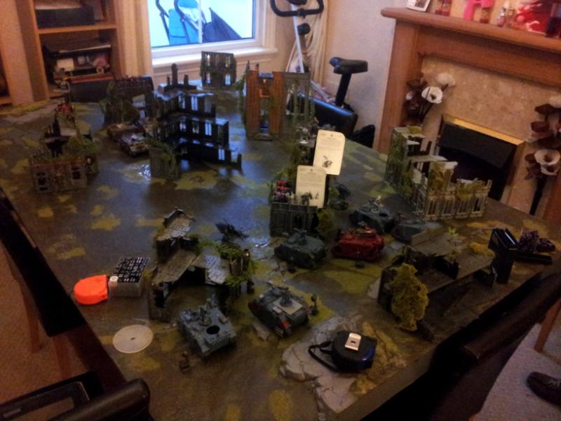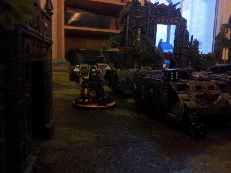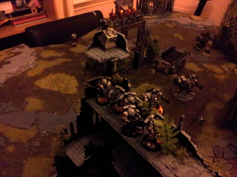 Two big boo boos by my this turn; I placed my objective in the wrong place thinking the Servitors can sit by it - there's no room for them to deploy as the ruin went over my deployment area. Second mistake was forgetting search lights on the Dreadnoughts, I just remembered them as I wrote this!