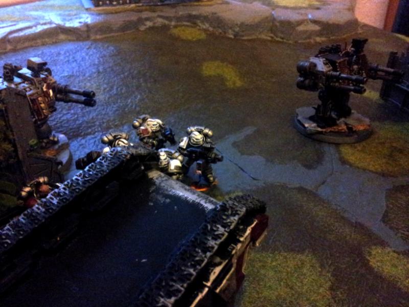 Next turn I will tackle the oncoming Rhino on the right flank while Dreadnoughts start blasting Long Fangs as Purifiers start taking out Grey Hunters on foot. Once this intitial wave is clear, I'll move my units out towards Shaun's deployment zone and secure objectives my side.