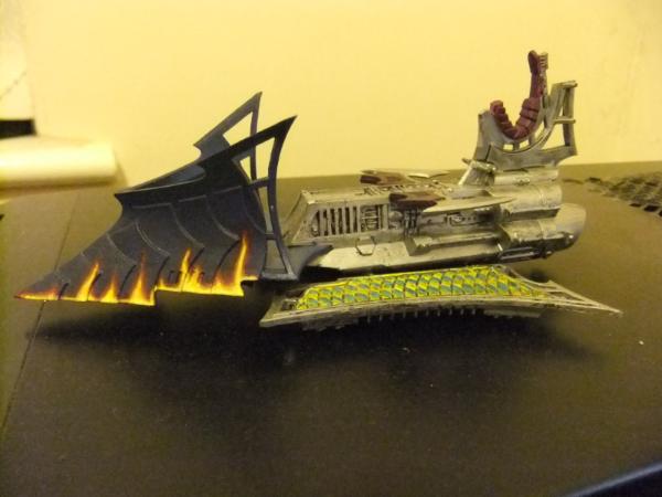 Firstly on a Necron Blue Hull , I painted my whole flame area Mechrite Red