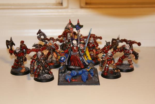 For the Retinue, the bare leg guys are all REALLY old berzerkers... honestly I'm not even sure when they were made. They're possibly 20 years old. There's also a Kharn the Betrayer model that I just slapped a skull on to match with the rest of the retinue and lord.